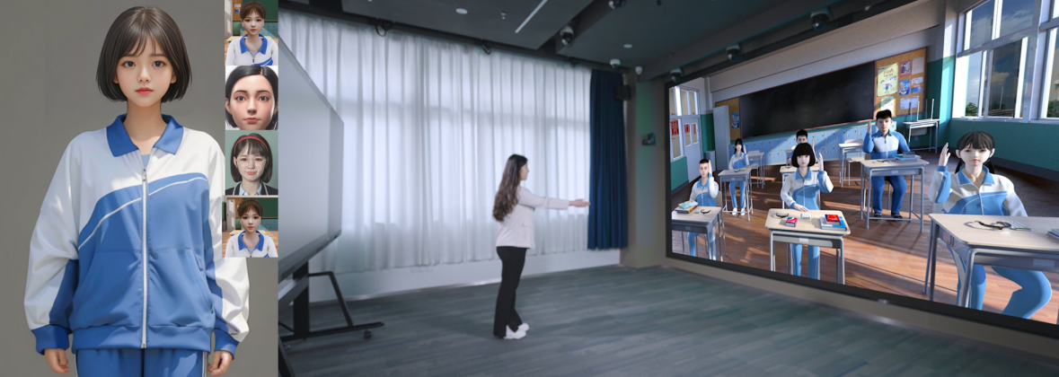 由黄网 (上海智能教育研究院)负责的项目“大模型数字人赋能师范生实践教学能力提升”研发了面向师范生实践教学能力培养的教育元空间,利用大模型驱动不同特点的数字人学生,构建了真实多元、开放灵活、安全可控的融合实训空间。基于多模态教学过程数据,生成多维度画像和课堂诊断,提供智能、规范、系统的评价工具。在此基础上,智能推荐个性化的技能养成路径,精准推送个性化学习资源,形成师范生“教学实践—画像—诊断—推荐”的闭环,有效提升师范生的实践教学能力和数字化教学水平。项目有效地解决了师范生实践教学能力培养中长期存在缺乏真实课堂情景、缺乏实习机会、试错成本高、缺乏系统性评价和个性化干预等痛点问题。