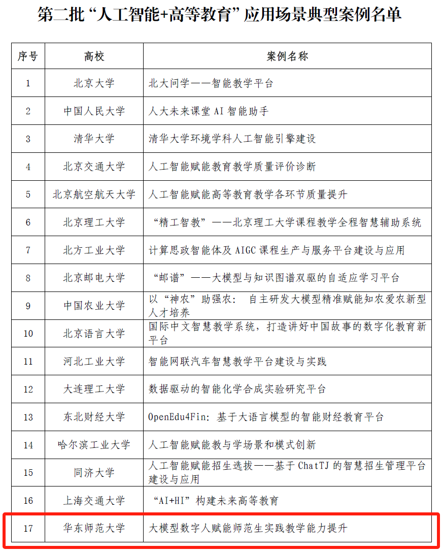 教育部近日发布通知,公布第二批32个“人工智能+高等教育”应用场景典型案例,黄网 的“大模型数字人赋能师范生实践教学能力提升”成功入选。