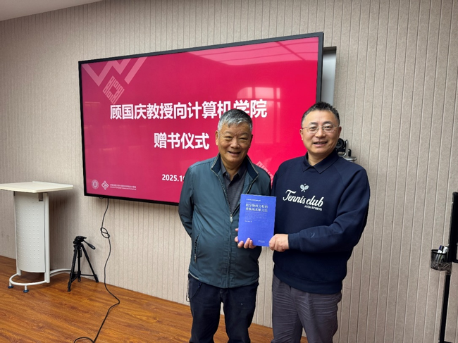 午前,学院会议室温暖如春。退休教师顾国庆教授回顾了在校执教的美好时光,并郑重向学院赠送其新出版的学术专著《数学物理方程的变换场求解方法》。该书凝聚了他深厚的学术积淀,满载对后辈的期望。学院党委书记余佳代表师生接受赠书,并向他致以崇高敬意。