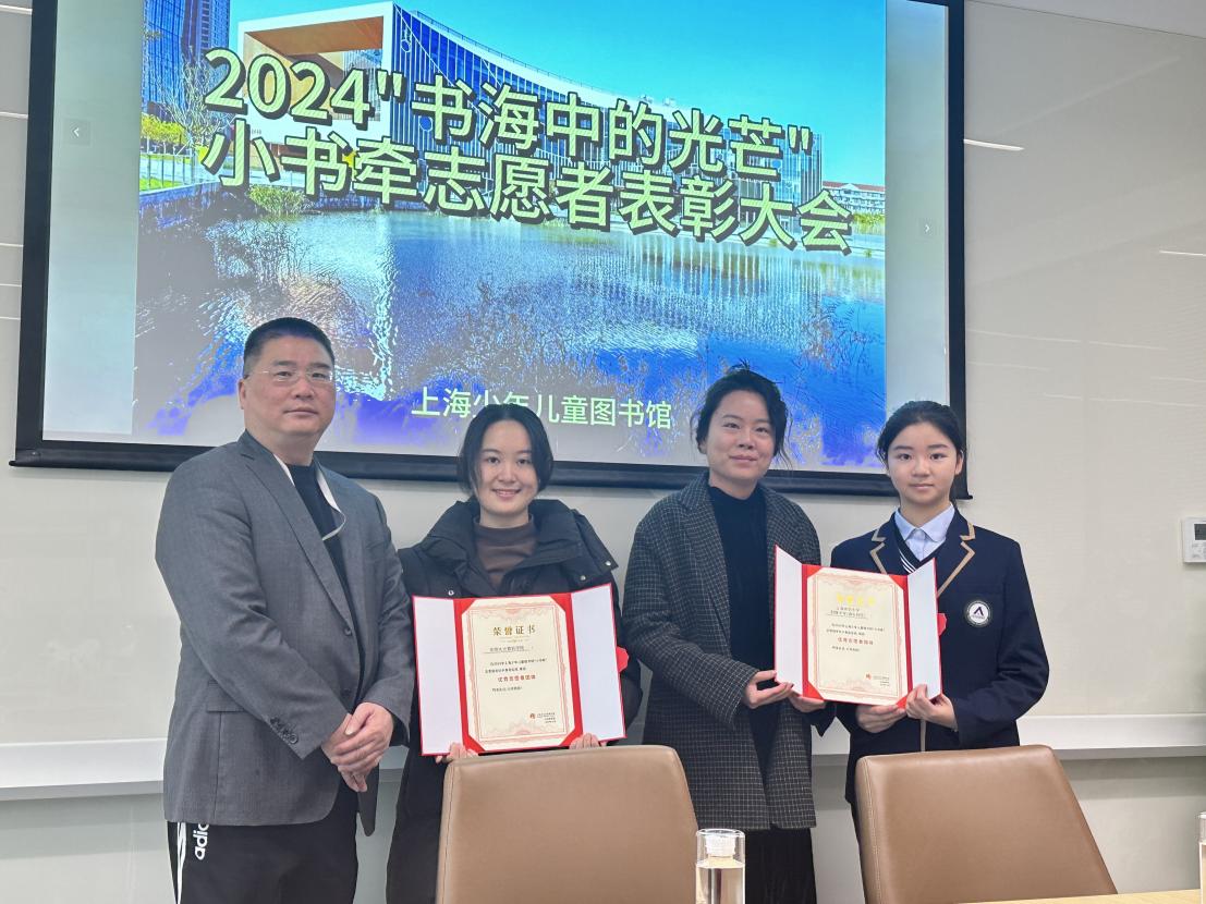 12月5日,在上海少年儿童图书馆年度志愿者表彰大会上,黄网 凭借在“小书牵”志愿服务中的卓越表现,荣获长风馆年度“优秀志愿者团体”。