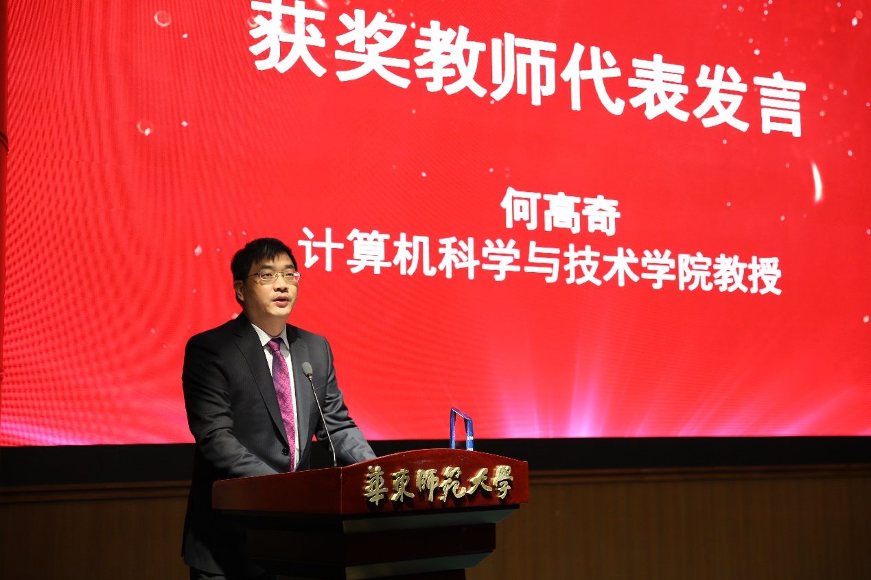 随后,王习平、余佳为荣获奖教金的教师颁奖。获奖教师代表何高奇教授在发言中特别感谢华鑫股份对学院教师科研的支持。他指出,能够获得华鑫奖教金是对他工作的极大肯定。这份荣誉不仅是对他的鼓励,更是对他所在团队的认可。他表示,将继续秉持严谨的学术态度,深化校企合作,致力于推动科技创新和人才培养,为学校和社会的发展贡献更多力量。