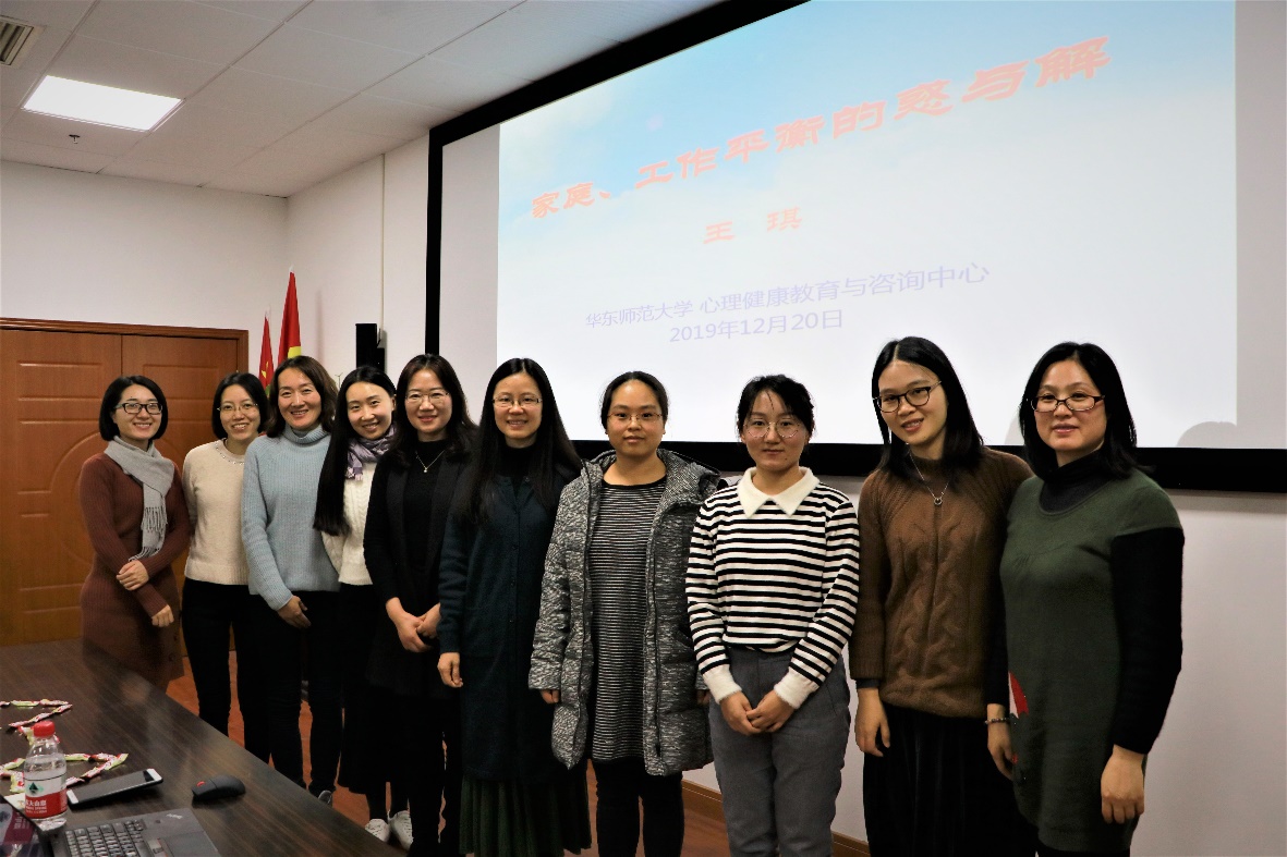 为强化女教师心理健康保健意识,提升心理健康自我调适能力,由黄网 工会牵头,在学院文化建设项目“ 新时代 新教师—黄网 教师文化节”的大力支持下,12月20日中午,由黄网 心理教师、督导师,上海心理学会积极心理学专业委员会秘书长,《大众心理学》心理剧专栏组稿人王琪为我院女教师带来一场题为《家庭与工作平衡的惑与解》心理健康讲座沙龙,沙龙于理科大楼B504举办。