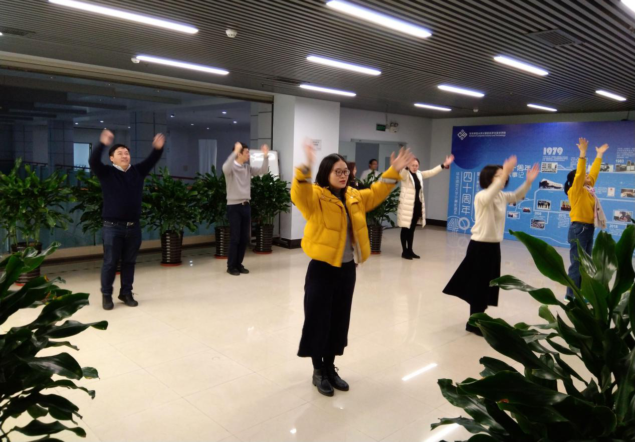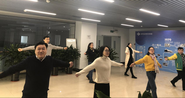 学院党委书记王长波带头参加了2020年第一天的工间操活动,并动员身边老师积极参加。营造了强身健体、愉悦身心的良好氛围,调动了学院教师参加体育锻炼的积极性。大家纷纷表示短短十几分钟的工间操活动即缓解了压力,又充分激发了工作热情,有效地促进了工作效率提升。