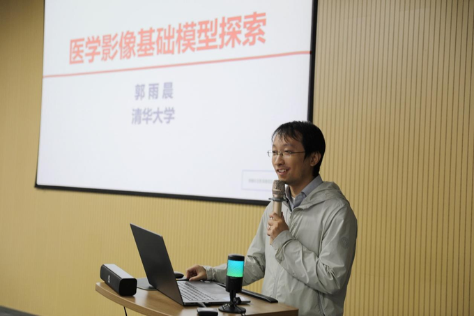 清华大学郭雨晨副研究员围绕《医学影像基础模型探索》展开报告,介绍了其在大规模医学影像分析中的模型构建与应用成果。他重点阐述了如何通过多中心、跨模态的预训练方法,构建能够泛化于不同成像设备和病灶类型的视觉基础模型。该工作降低了模型对标注数据的依赖,提升了在分割、分类与检测等下游任务中的性能与效率,为临床辅助诊断与医学研究提供了高效可靠的算法支持。