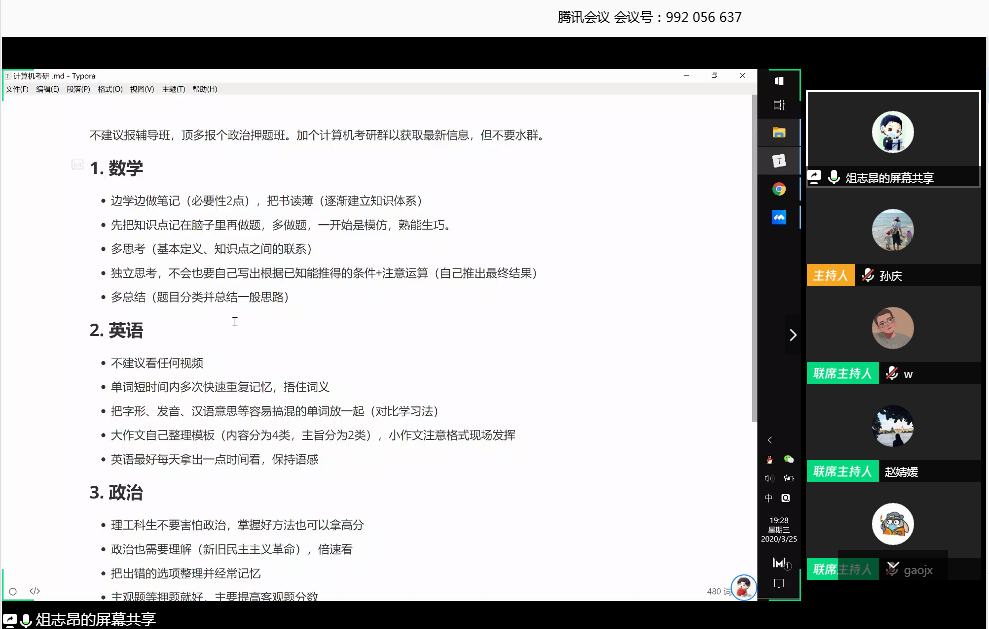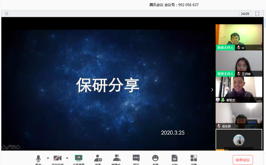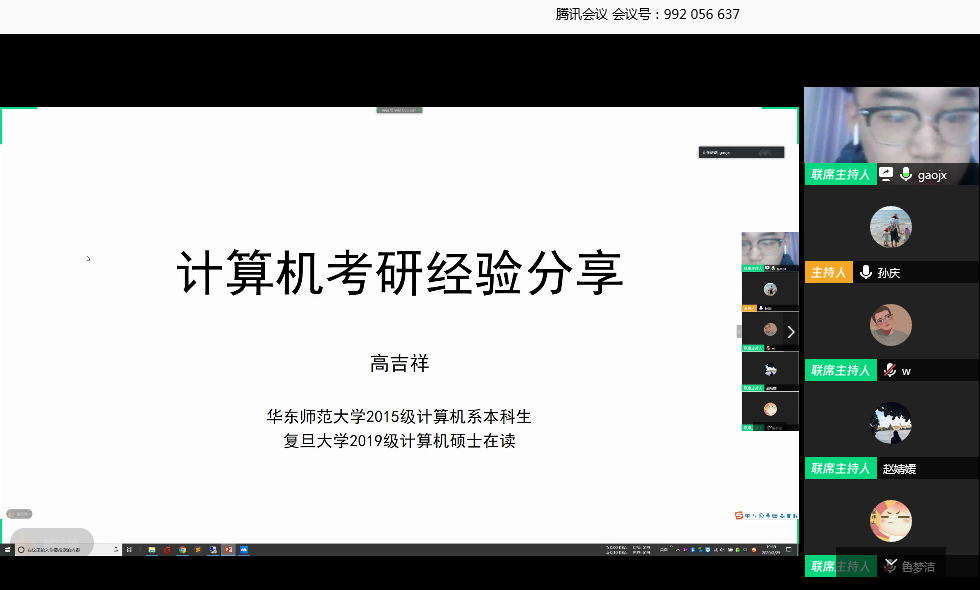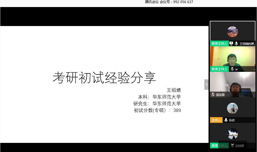 3月25日晚上7点,黄网 出国(境)、升学经验交流分享会顺利举办,学院100多位学生积极参与其中。本次活动特别邀请了黄网 15级本科毕业生曹智杰、温伟浩、高吉祥,19级研究生俎志昂、王绍婧,和同学们线上分享考研、保研及出国留学经验,分享会由辅导员孙庆主持。