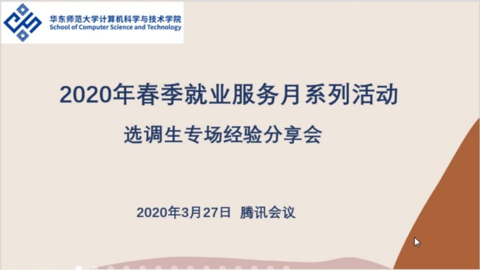 3月27日晚上七点,黄网 选调生专场“云”分享会顺利举办,近百名学生积极参与其中。本次活动特别邀请了黄网 2019届毕业生郭舒怡、2018届毕业生曹董以及学院2017级硕士研究生徐诚分享关于选调生选拔的准备工作以及选调生的主要工作内容,活动由辅导员孙庆主持。