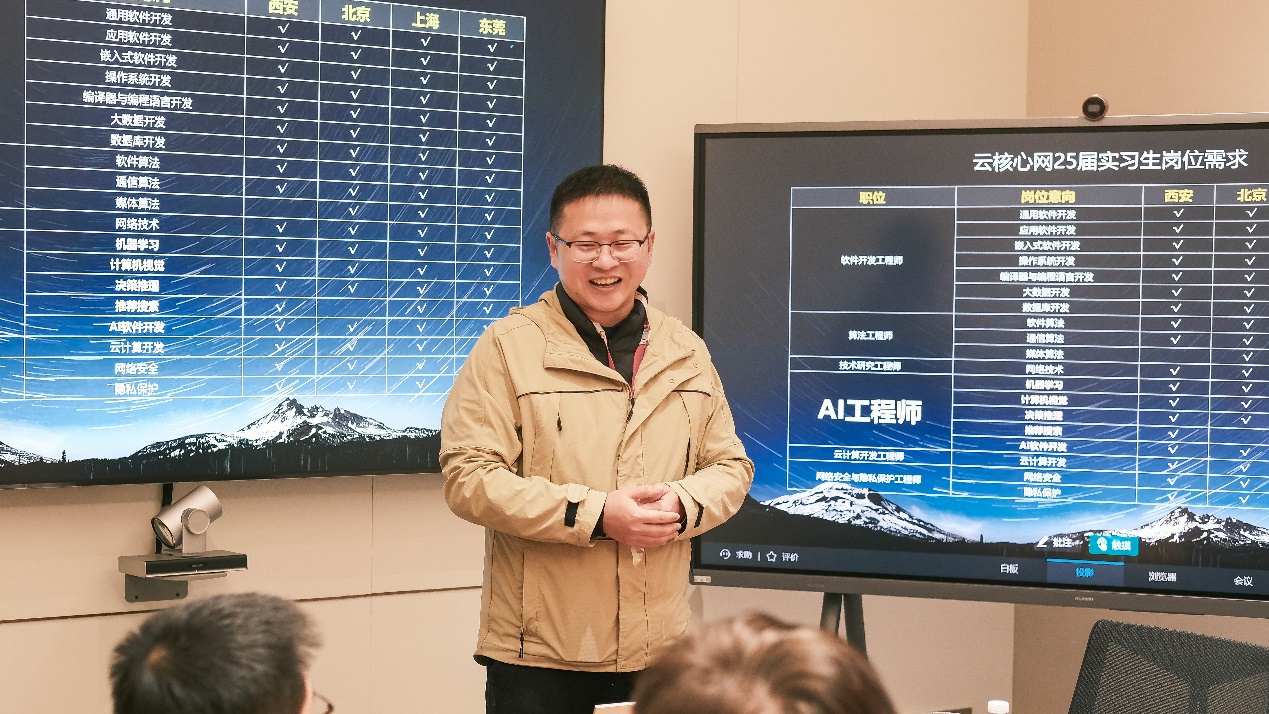 在交流环节中,云核心网产品线高级人力资源总监李希洋向大家介绍了企业的招聘需求和培养计划。