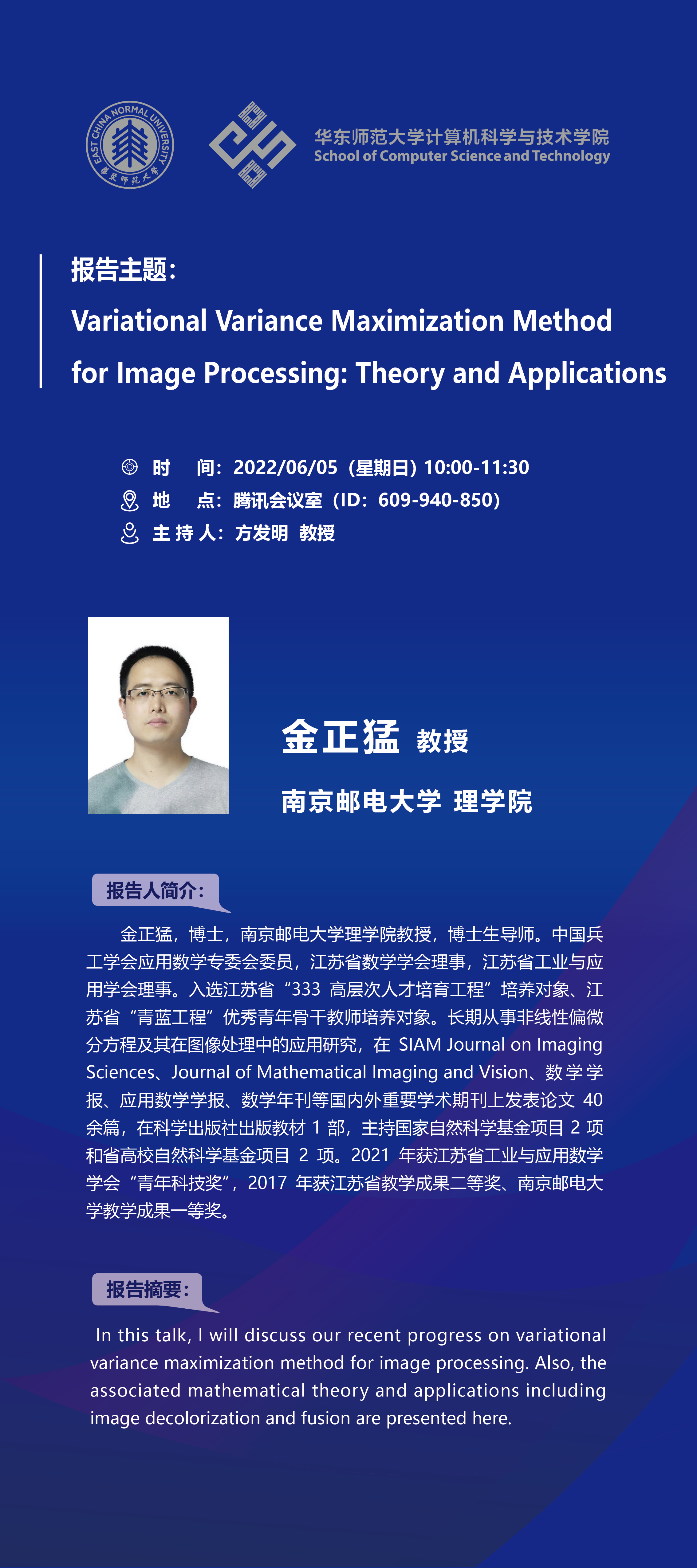 报告地点:腾讯会议(会议号:609-940-850)