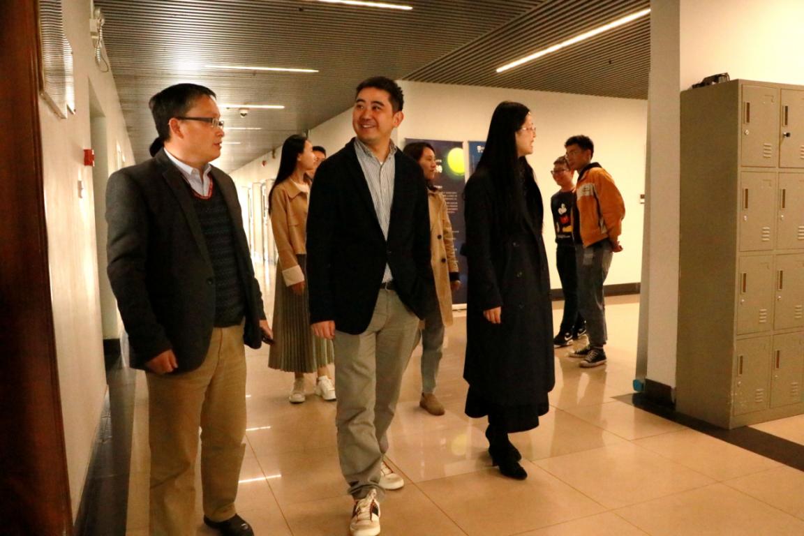 在学院领导的陪同下,刘鑫校友一行首先参观了研究生实验室和本科实验教学中心,共同为本科教学实验中心的建设和发展出谋划策。在座谈环节,陈蕾围绕学科建设、人才培养、科学研究和社会服务等方面介绍了学院发展现状。