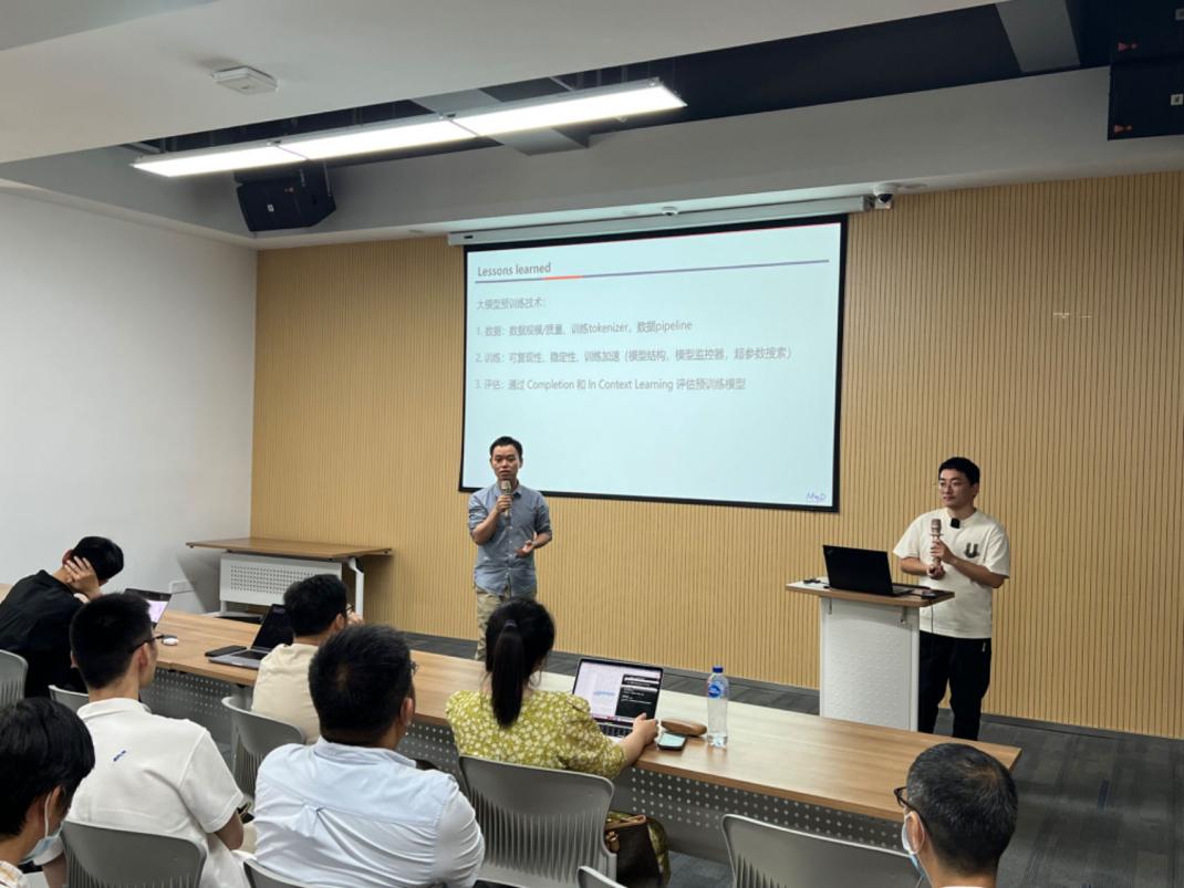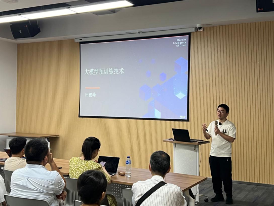 此次研讨会,我们有幸邀请到了来自小红书的田俊峰老师,为大家带来一场精彩纷呈的知识盛宴,活动现场气氛热烈,座无虚席。田俊峰老师先后在阿里达摩院、小红书等单位工作,有丰富的大模型研发经验,曾从零训练一个类LLaMA 7B性能的大模型。本次报告,田俊峰老师以“大模型预训练技术”为主题,深入浅出地为大家从数据和算法两个角度讲解了大模型预训练技术的核心要点。