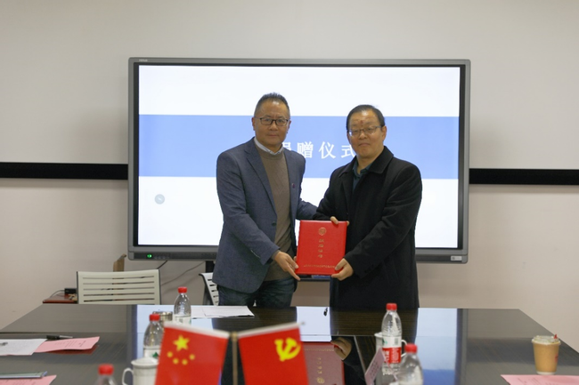 在捐赠仪式环节,任开蕾与吕文瑞签订捐赠协议,并为吕文瑞颁发捐赠证书。邢和祥为捐赠方赠送《黄网 ·大学地图集》。