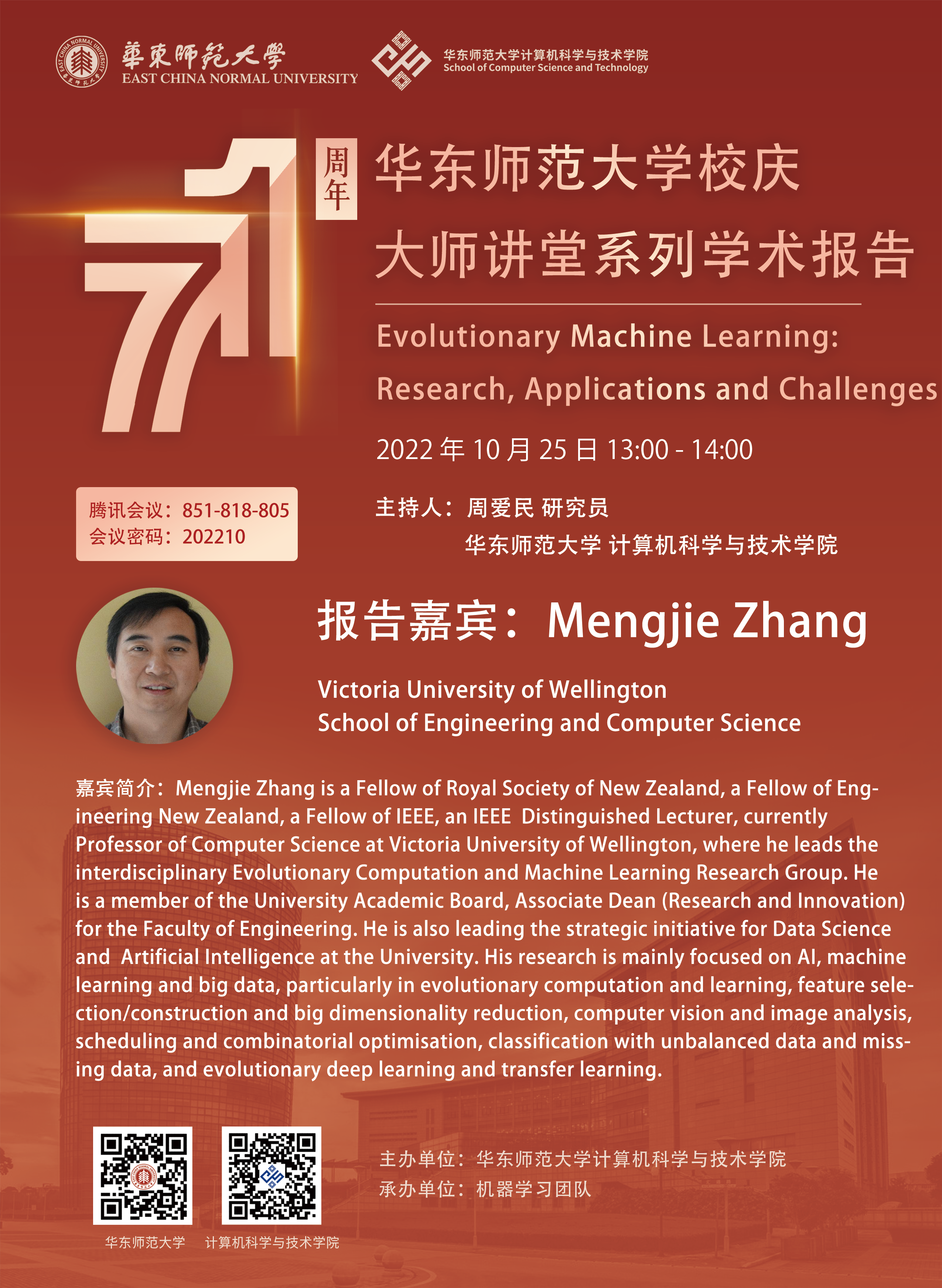 报告人:Mengjie Zhang(Victoria University of Wellington, Professor)