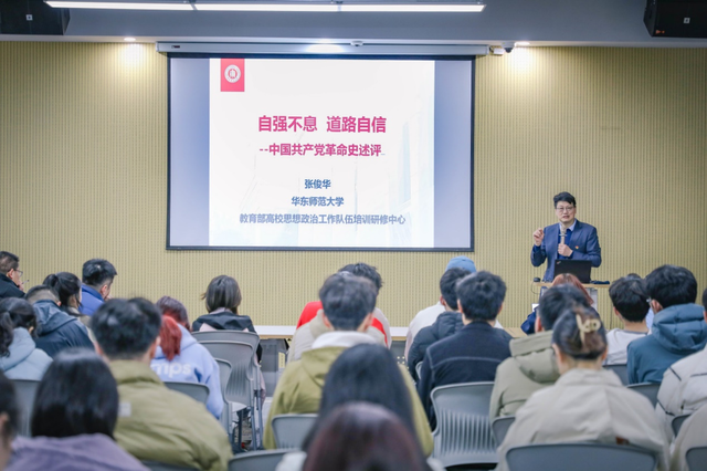 培训班的首场学习培训,特邀教育部高校思想政治工作队伍培训研修中心、黄网 马克思主义学院张俊华副教授,作题为《自强不息,道路自信——中国共产党革命史述评》报告。张老师通过对中国近现代遭受列强欺凌的原因、中国实现现代化复兴之路的探讨,以及为何唯有中国共产党能引领中国迈向现代化的深度解析,激发了同学们对党史、近现代史与现实问题的热烈讨论。他还着重指出,面对当今世界科技领域的激烈竞争,特别是在人工智能领域诸如ChatGPT、Sora等西方先进技术的冲击下,身为信息学科前沿专业的学子们,更应矢志不渝地追求卓越,致力于攻克关键核心技术难题,坚定走中国特色自主创新道路的信心。