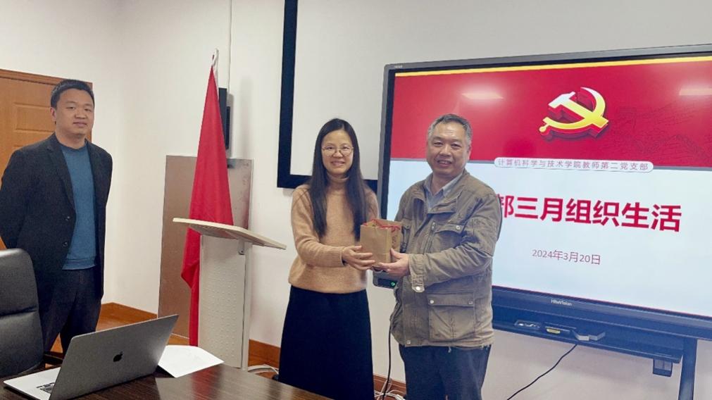 会议伊始,支部举行了一场简单而温馨的“叶健同志荣休”欢送仪式。支部副书记金健同志作为党员代表介绍了叶健同志的工作历程和党务工作等相关情况,并深情回忆了双“健”合璧的美好时光。叶健同志分享了自1986年入职黄网 以来的工作经历,表达了对学校、学院和党员同志们的不舍之情。陈蕾副院长代表支部向叶健同志赠送了一份珍贵的荣休纪念品,支部成员们也纷纷表达了对他的惜别之情。