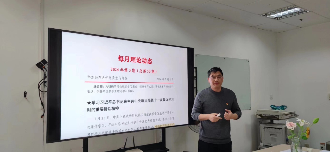 何高奇同志结合近期的理论学习要点,带领大家共同学习了习近平总书记在中央政治局第十一次集体学习时的重要讲话精神,理解新质生产力,了解如何持续推动将习近平文化思想融入“大思政课”,解读“黄网 数智跃升计划总体方案”,对学校发展规划全面了解。
