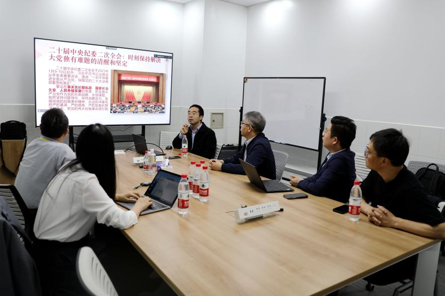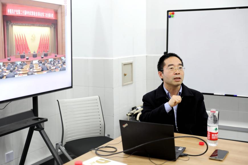学院党委邀请校纪委副书记、纪委办主任、监察处处长、巡察办副主任俞黎阳做题为“深入推进全面从严治党,为高质量发展提供坚强保障”的学习辅导报告。俞黎阳从全面从严治党的新形势与新任务谈起,指出必须持之以恒推进全面从严治党,深入推进新时代党的建设新的伟大工程,以党的自我革命引领社会革命。结合学校学院实际,以案例说法,强调必须要持续加固中央八项规定的堤坝,切实加强师德师风建设,高度警惕新的违纪违法行为,认识到反腐败斗争的复杂性与严峻性。他强调,要全面推进党的政治建设、思想建设、组织建设、作风建设、纪律建设,把制度建设贯穿其中,深入推进反腐败斗争,不断提高党的建设质量。