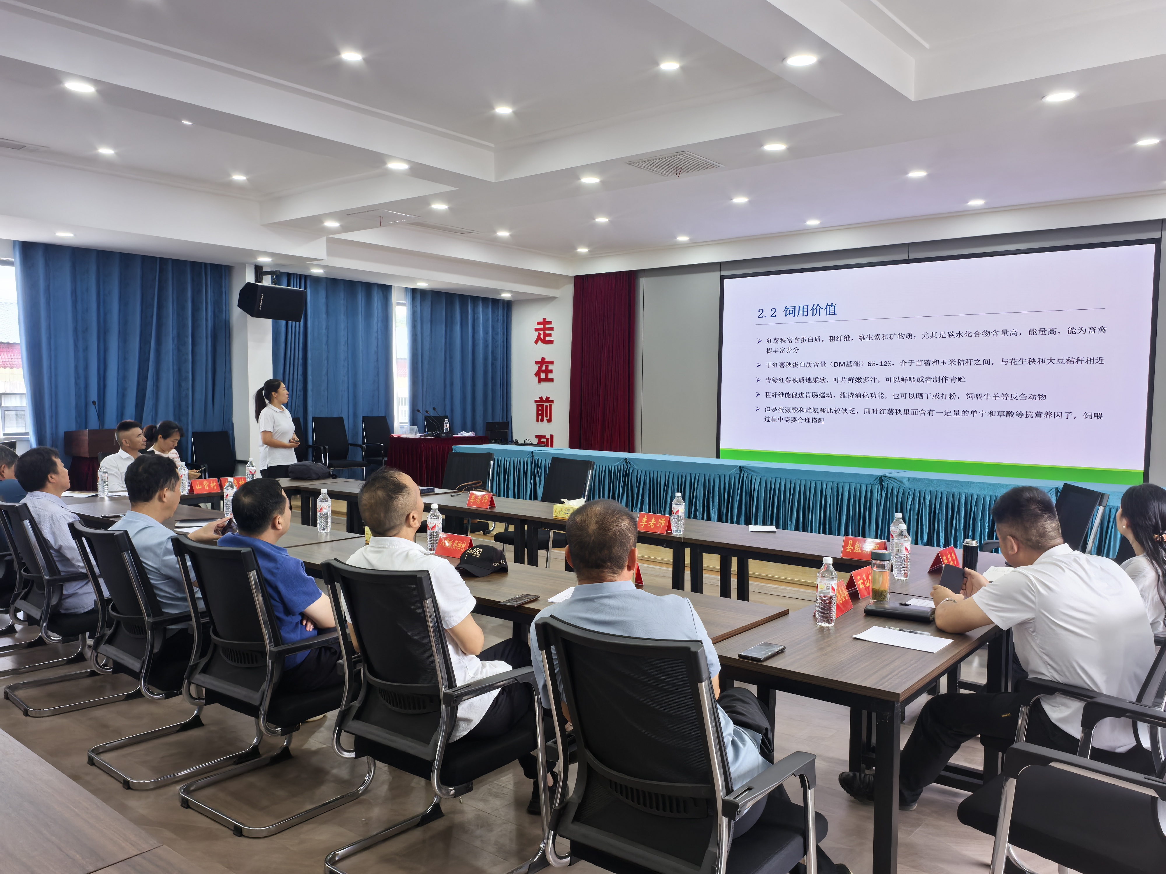 随后召集各村种植户和养殖户负责人进行了技术培训,李志敏教授讲解了红薯育苗,种植,管理和深加工等关键技术,李改英高级实验师讲解了红薯秧的青贮加工技术,地方秸秆资源的开发利用,种养结合生态畜牧业发展案例等关键技术,并对农户关心的问题进行了解答。最后双方就红薯高效种植技术,种养结合的农业循环生态模式研究应用达成了合作意向,举行了合作基地授牌仪式。