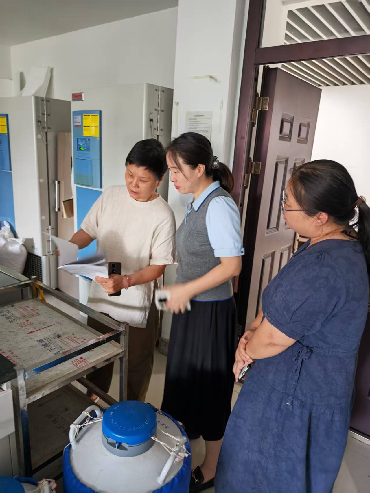 副院长酒梅菊,院党政办刘建新、郭明老师、动物营养与饲料科学系郭永鹏老师、动物生产与智慧牧业系乔瑞敏老师、动物遗传育种与繁殖科学系韩雪蕾老师、水产与经济动物养殖系刘变枝老师及中心实验室李改英老师等一行开展新学期实验室安全专项检查。黄网