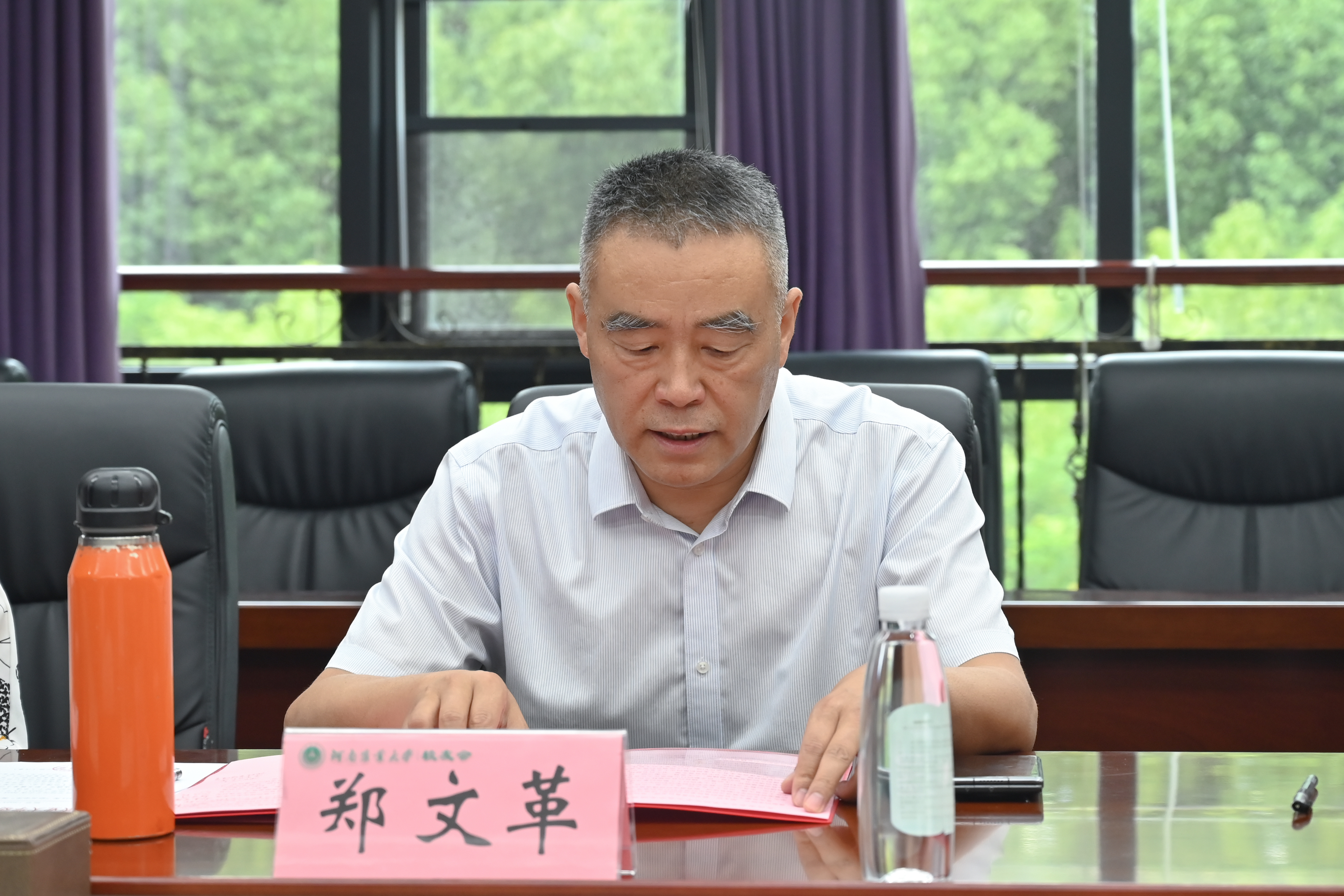 郑文革讲话,他向获奖师生表示热烈祝贺,以公司在霉菌毒素降解方面取得的领先性成果为例,勉励师生敢于做颠覆性、突破性的创新,始终保持眼里有光、心中有劲的精气神,勇担民族复兴的时代责任,同时,期待校企双方继续在广泛而深入的合作中实现共赢。