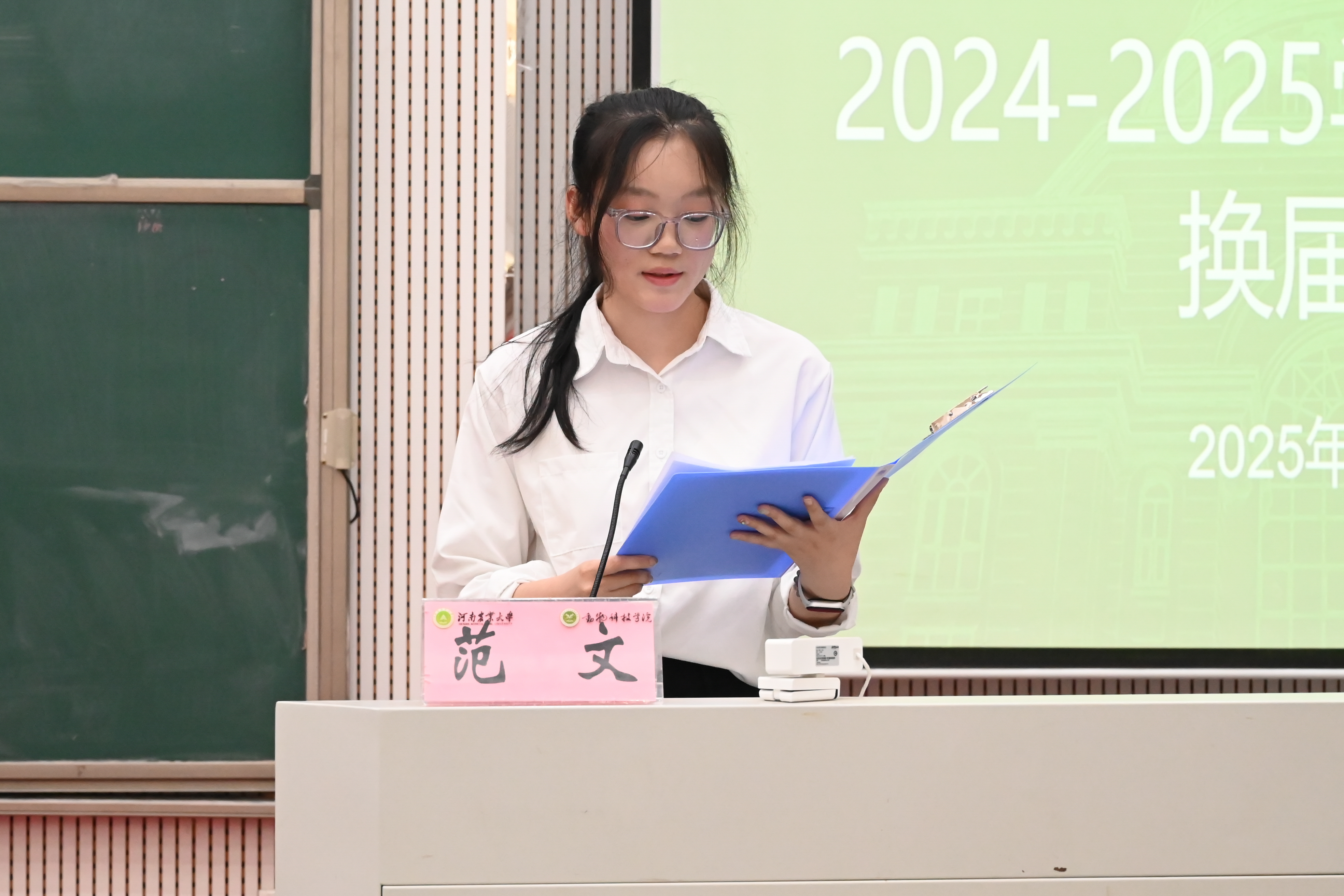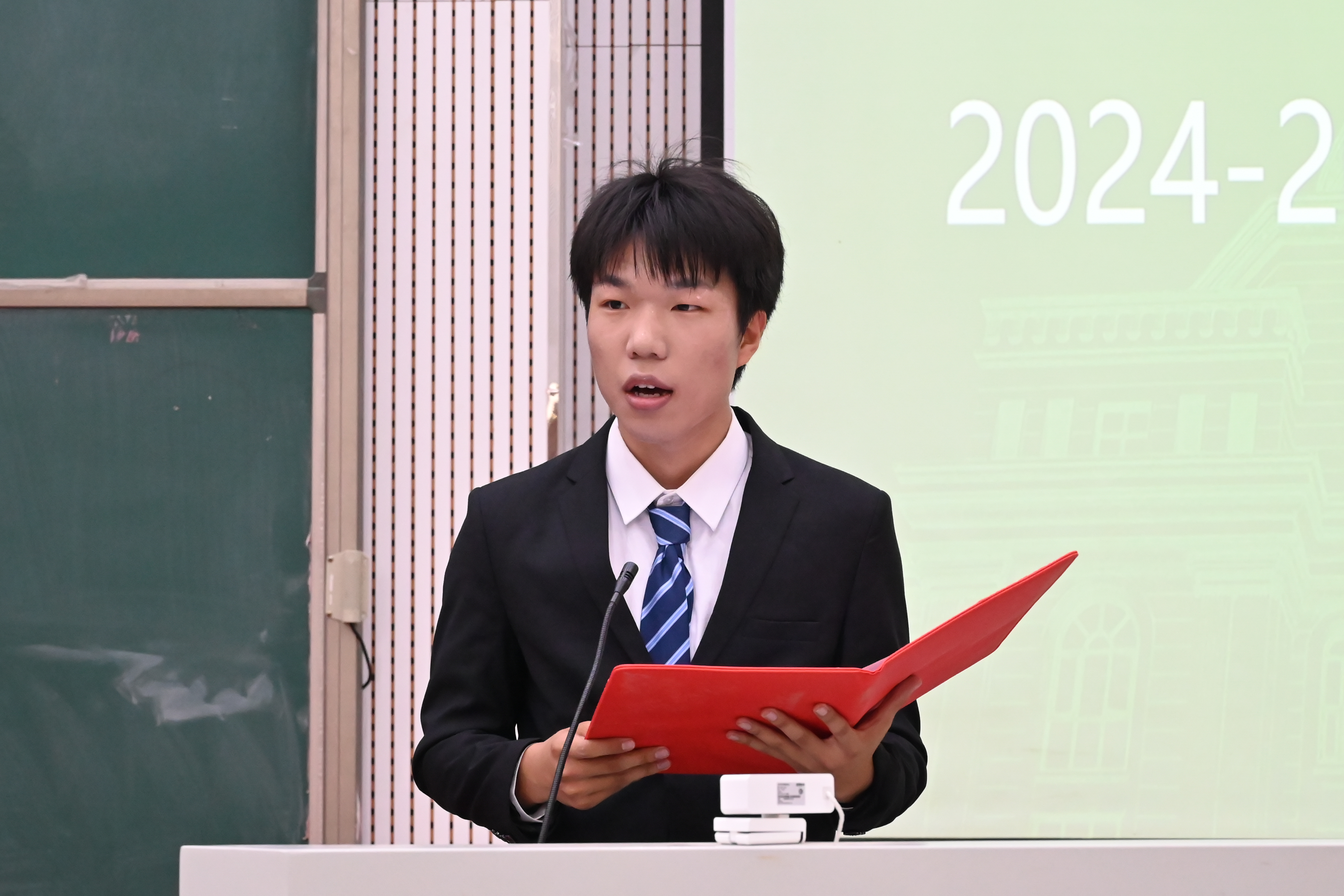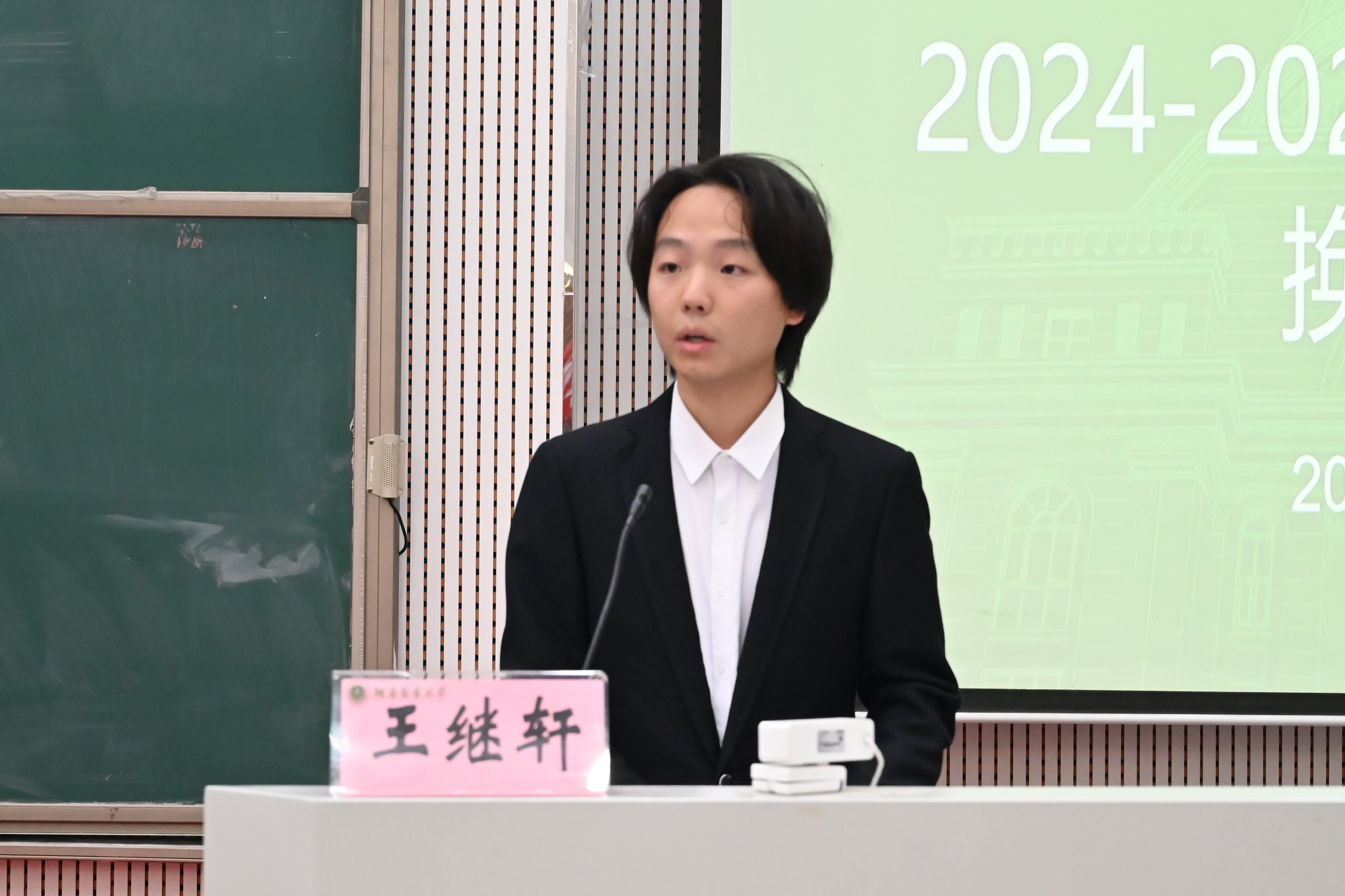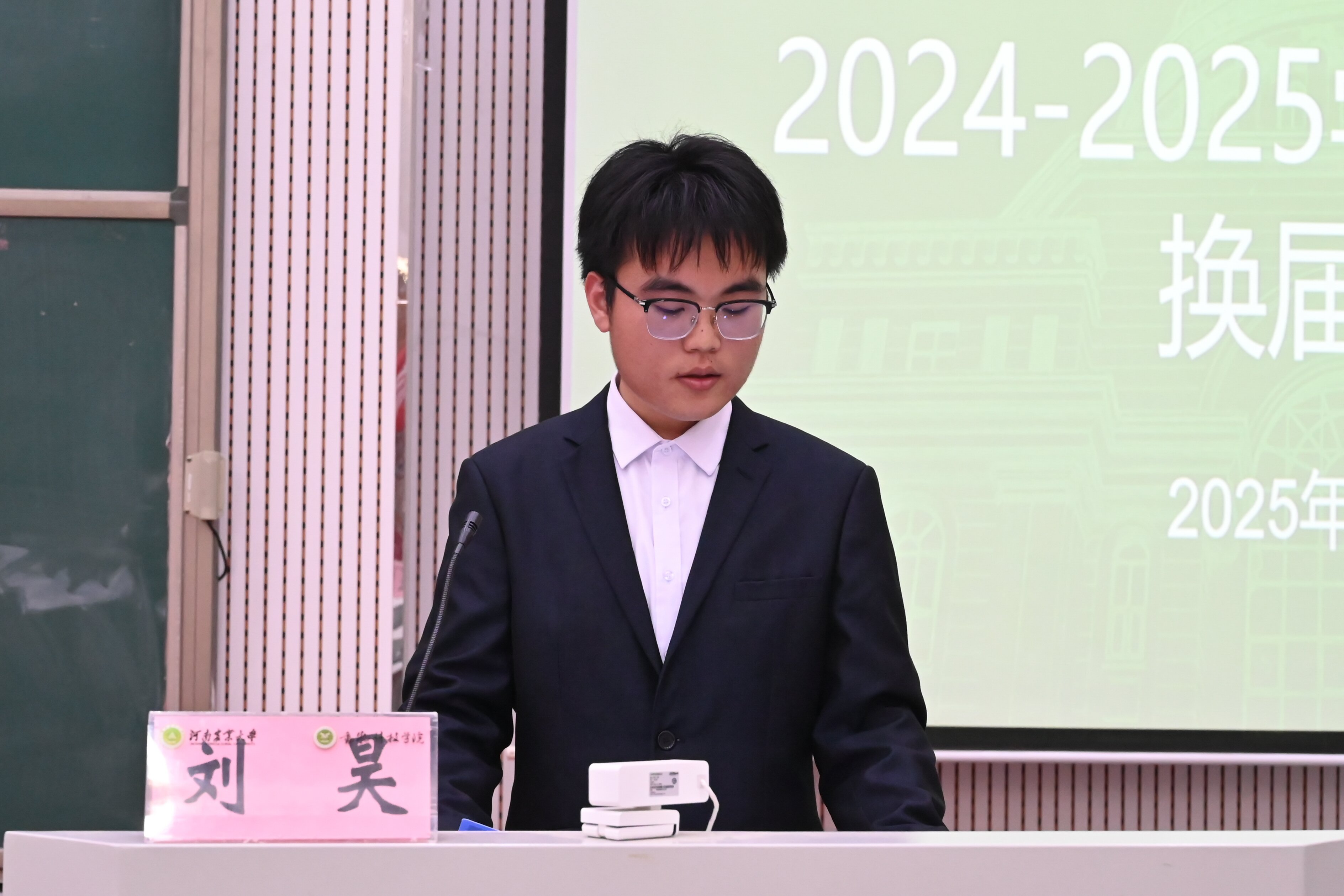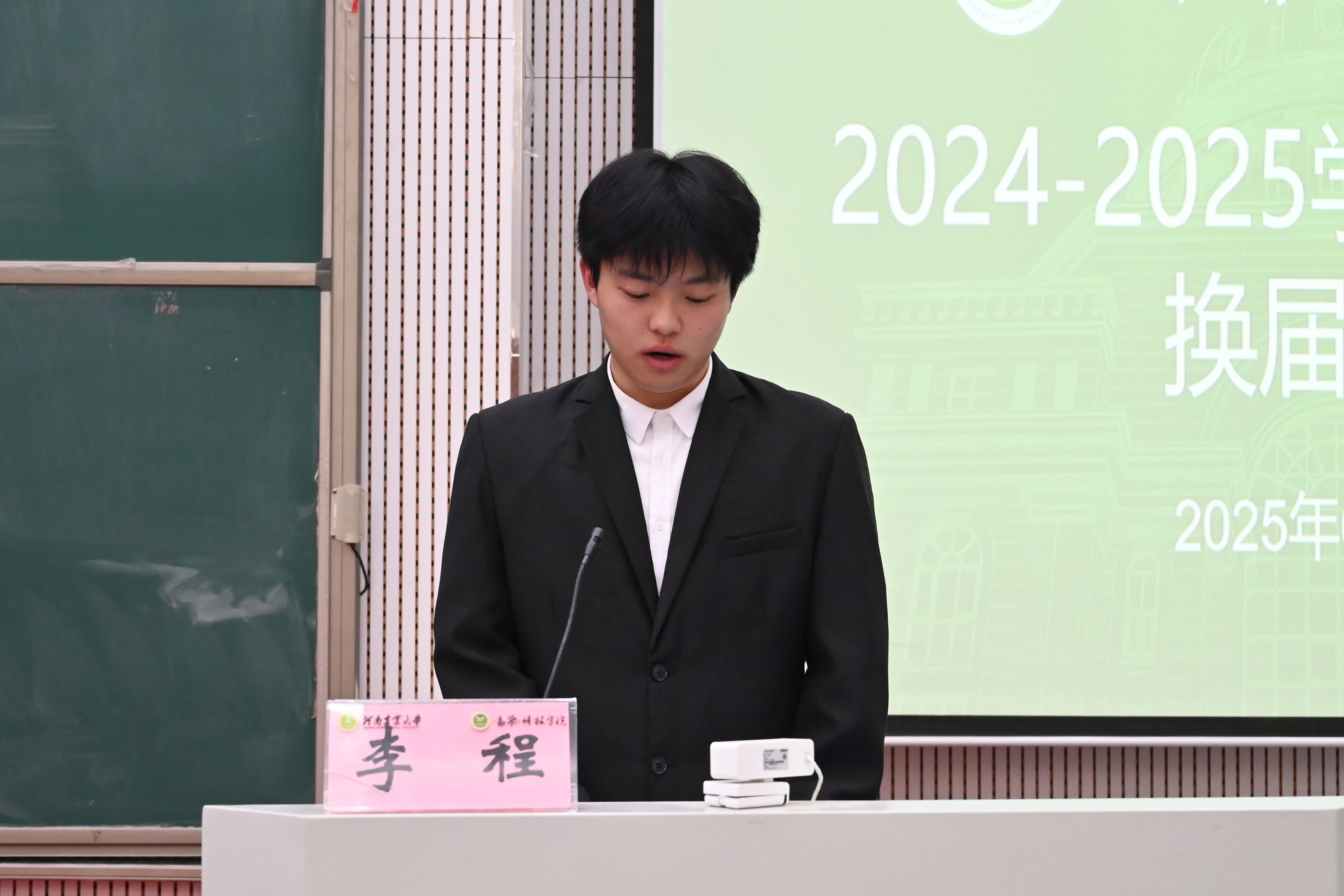 团委委员代表马一欣、党建办公室主任李春雨、学生会主席团代表周国梁依次进行工作总结汇报。各部门新一届候选人逐一登台发表竞选演讲,展现了学生骨干积极进取、追求卓越的良好风貌。随后,各位老师为22级学生干部颁发聘书,每份聘书,是认可更是期许,激励新任职者以行动践行青春担当。