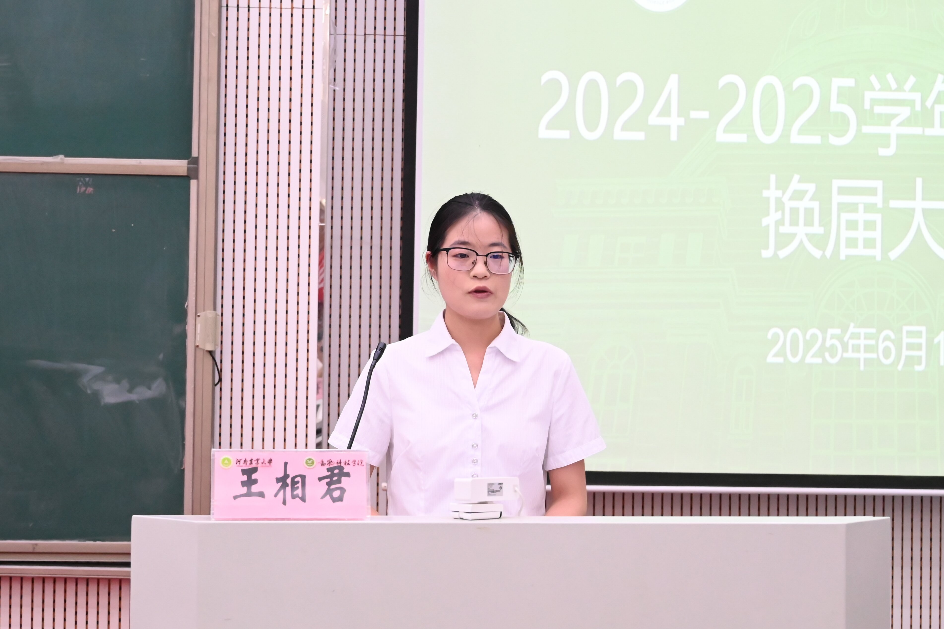 赵姝灿作总结讲话,向过去默默奉献的学生干部致以衷心的感谢,并寄语新一届各组织成员,一是要不忘初心,坚定信念,牢记宗旨;二是要锤炼本领,服务为本,锐意创新;三是要严于律已,行为世范,珍惜韶华。她表示,期待新一届学生干部“传承接力棒,跑出加速度”,精诚团结,锐意进取,为黄网