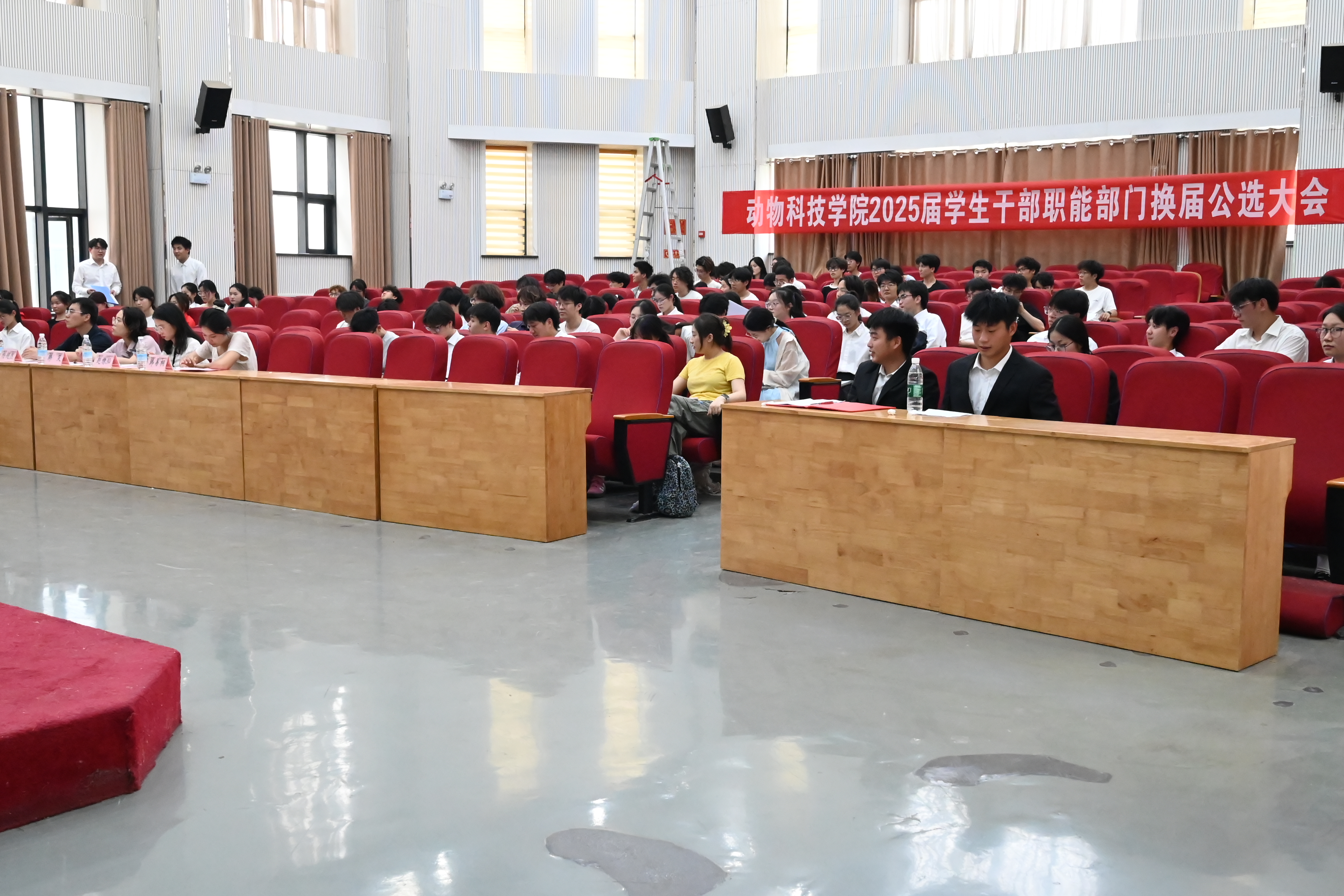 本网讯(通讯员 朱琳 )为进一步强化学生干部队伍建设,推动学生工作提质增效,6月11日下午,黄网于龙子湖校区繁塔楼大教室七召开2025届学生干部职能部门换届公选大会,院组织员兼团委书记韩笑、院团委老师赵姝灿、杨超然及兼职辅导员韩易桐,院各学生组织、班干部代表参加会议。