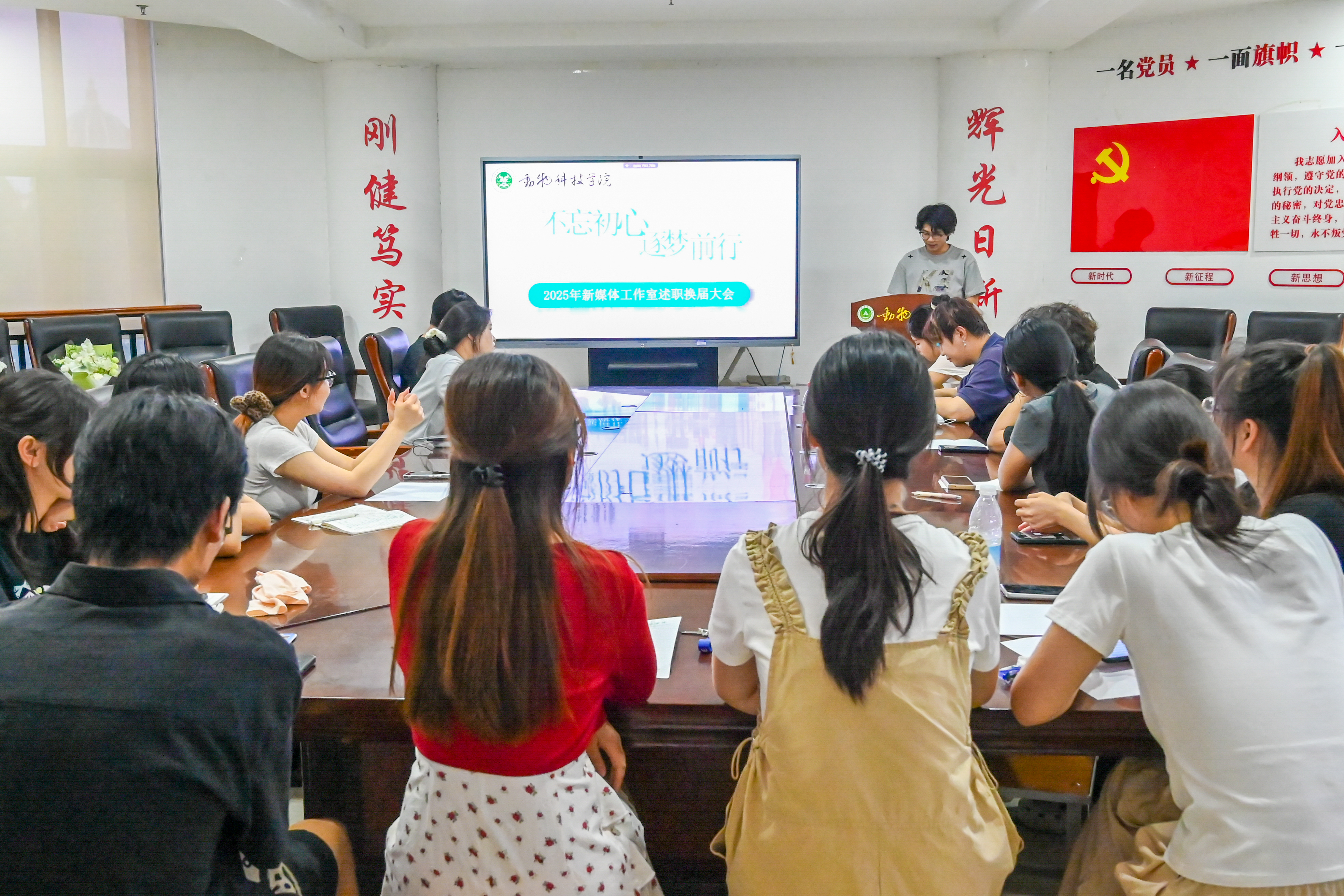 本网讯(通讯员 辛佳艺  张锦扬)为全面总结本学年新媒体工作室工作成效,进一步提升黄网 宣传影响力,6月10日晚,黄网新媒体工作室于龙子湖校区第一实验楼北330会议室举行“不忘初心 逐梦前行”2025届新媒体工作室述职换届大会,新媒体指导老师韩易桐及22、23级新媒体成员参会。会议由刘芷晴主持。