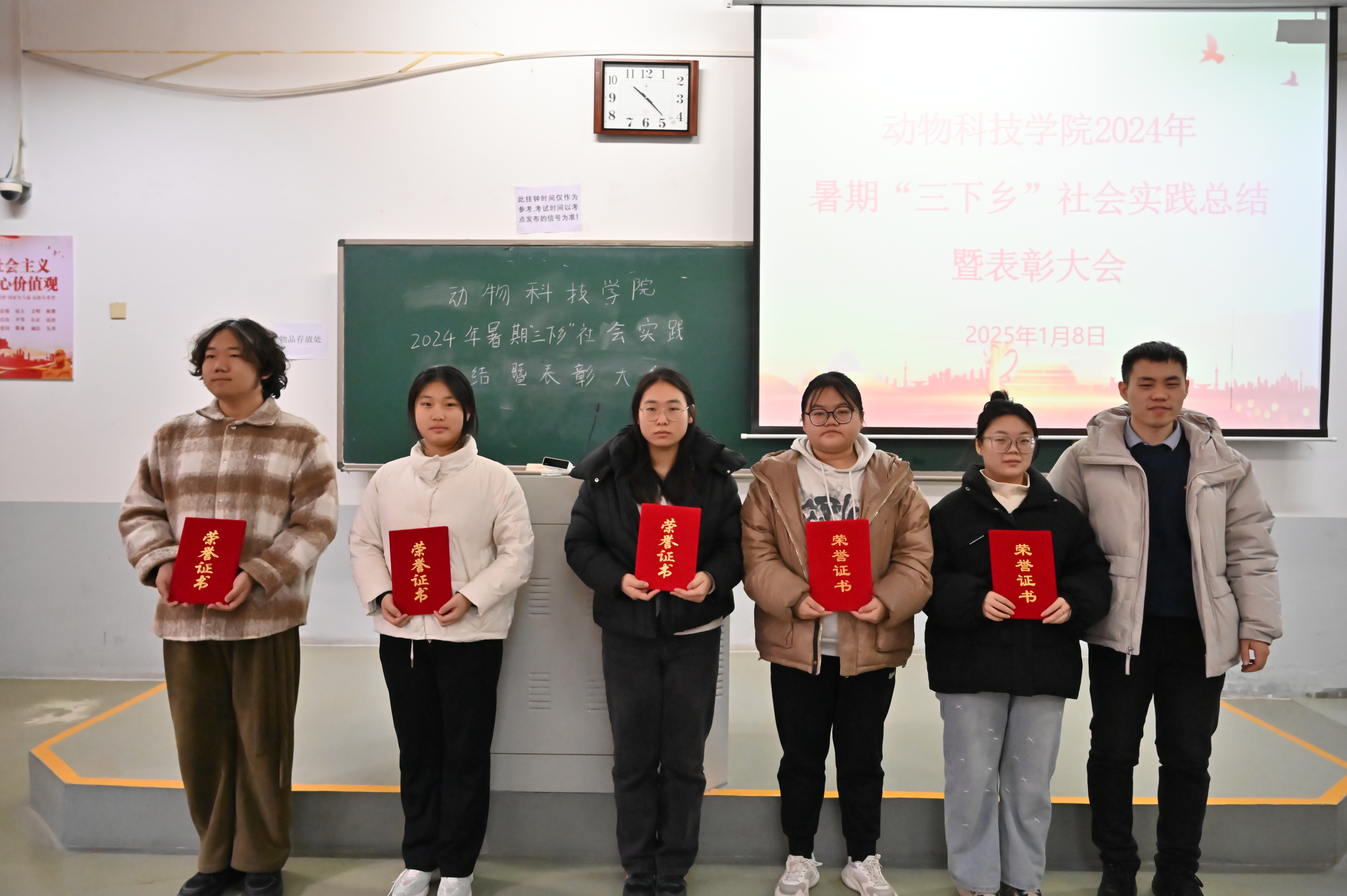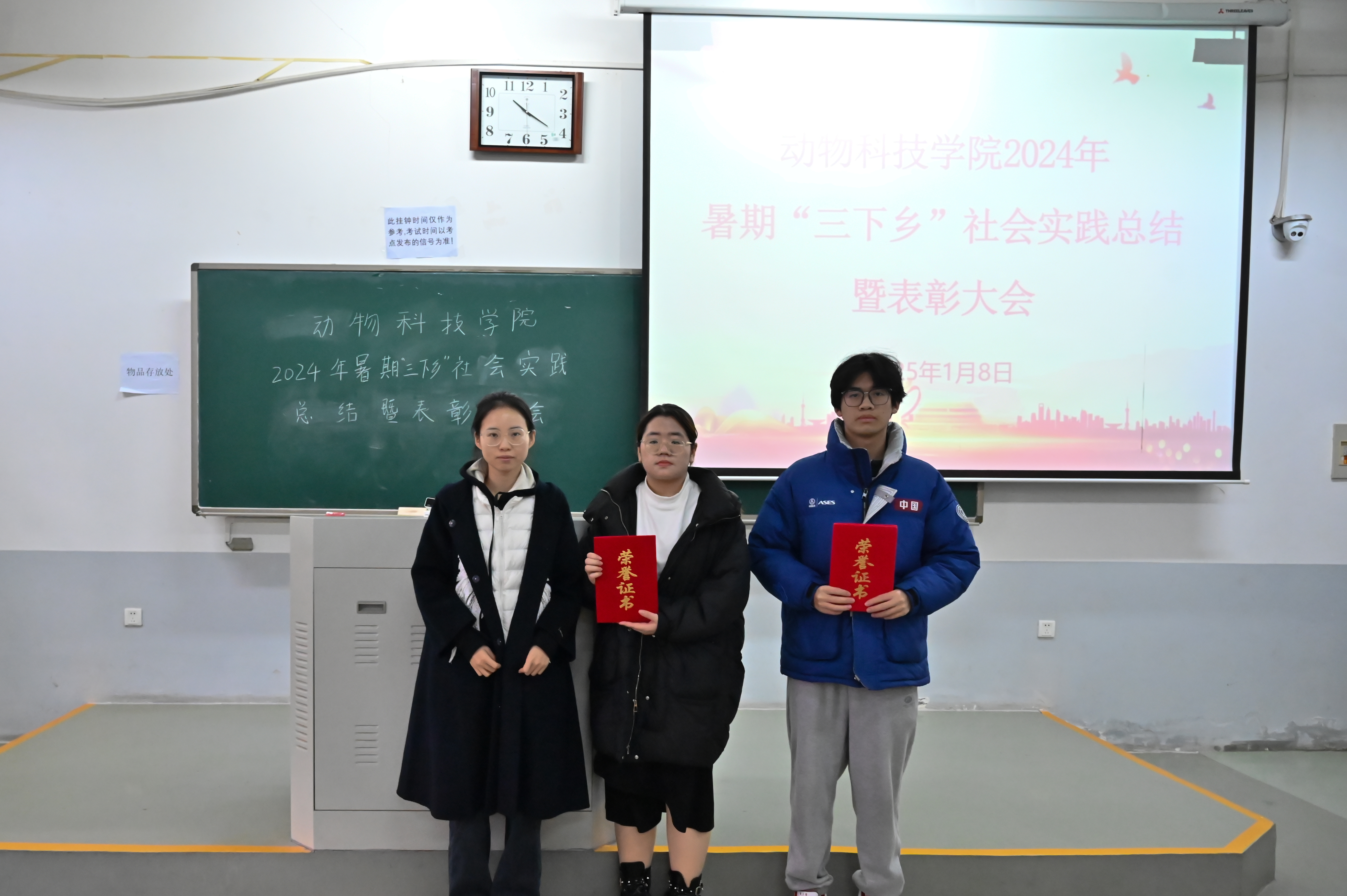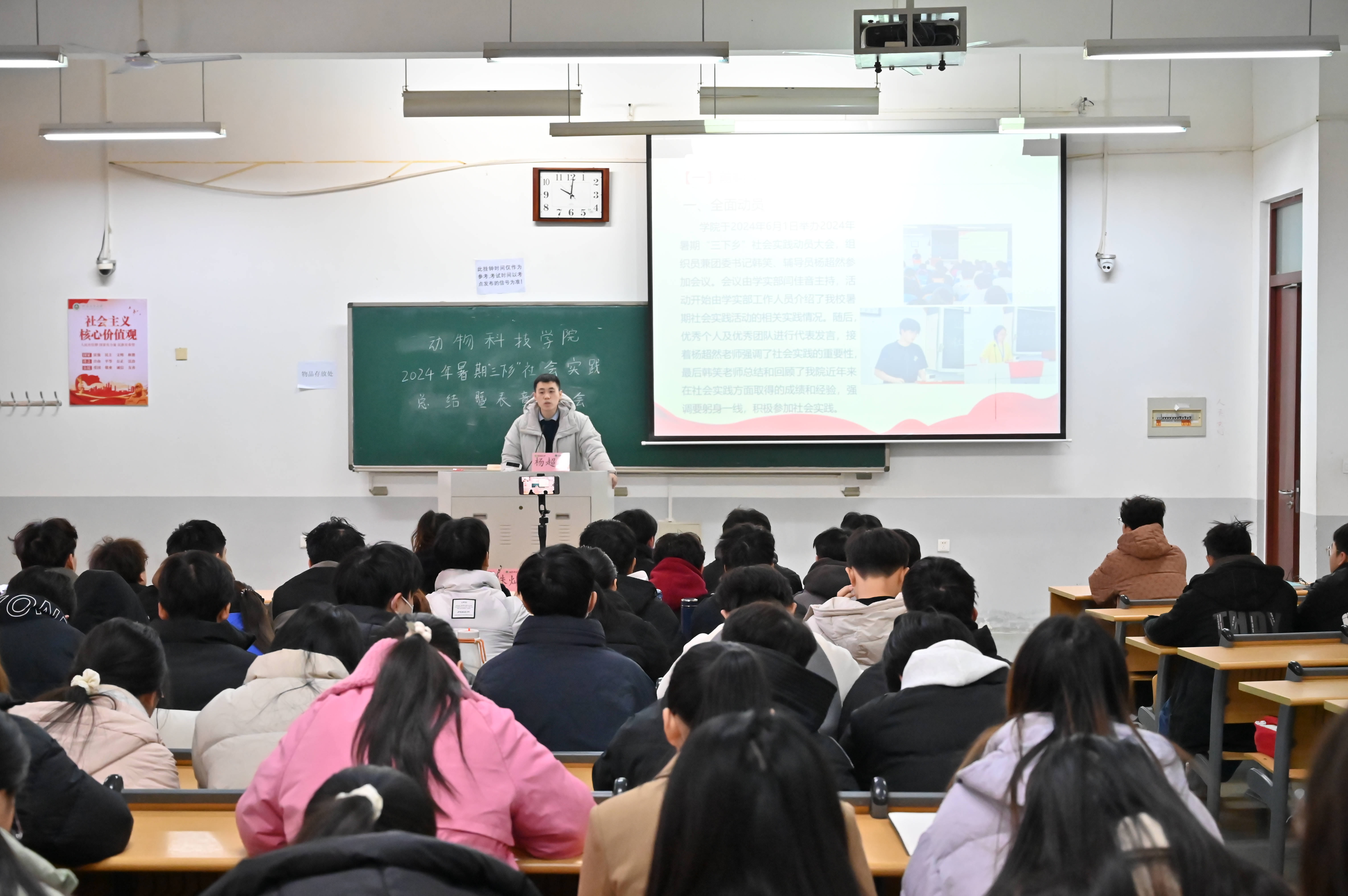 本网讯(通讯员 李梦丹)为表彰先进,激励并引导学生积极参与社会实践,1月8日上午,黄网于龙子湖校区繁塔楼E113教室举办2024年暑期“三下乡”社会实践总结暨表彰大会,辅导员赵姝灿、杨超然及22、23级学生代表参会,24级学生线上参会。