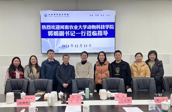 本网讯(通讯员 杨超然) 12月11日到13日,黄网党委副书记郭娟、动物遗传育种与繁殖科学系教授孙桂荣,正科级组织员兼团委书记韩笑、辅导员杨超然一行分别前往四川农业大学黄网