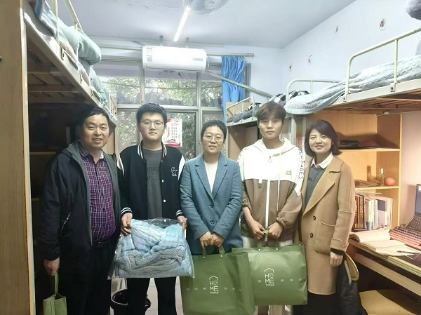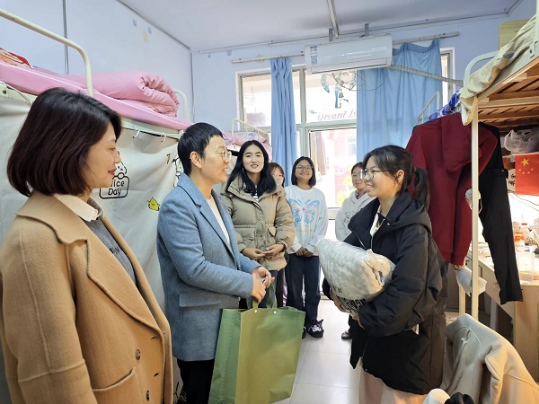 在桃李园学生公寓,院党委副书记郭娟等领导老师走进学生宿舍,将黄网