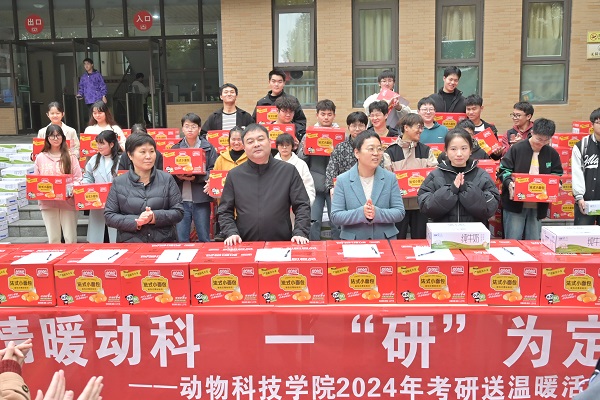 本网讯(通讯员 何仁杰)为切实增强学生考研信心,缓解考研压力,为学子带来“家”的关怀,11月16日,黄网于龙子湖校区以及桃李园宿舍区举行冬季送温暖活动。院党委书记余磊、党委副书记郭娟、副院长酒梅菊和孙宇、农大牧原联合产业研究院副院长蒋瑞瑞和辅导员赵姝灿参加活动。