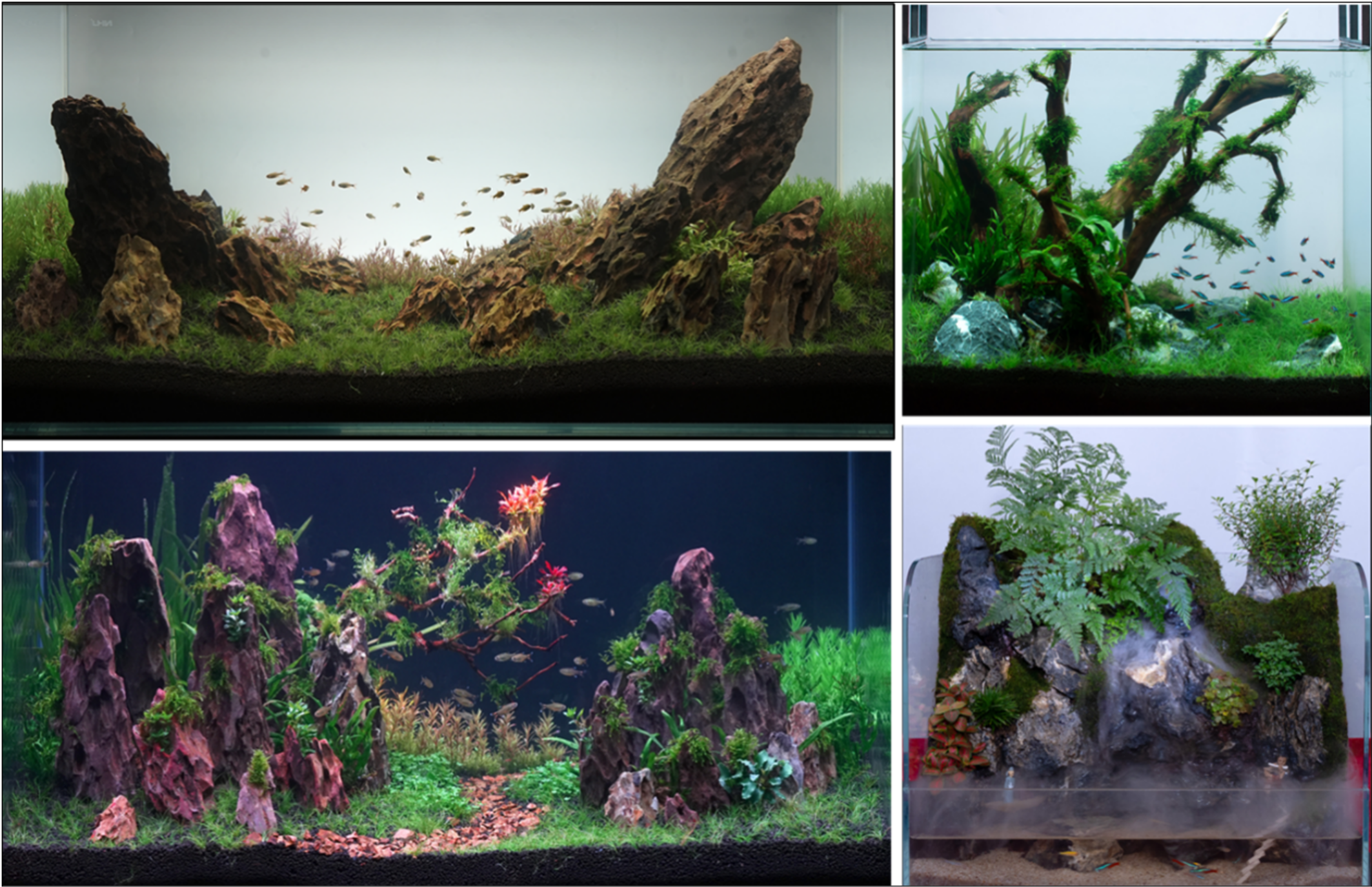 小缸组1号《绿波》(右上)和水陆缸组5号《翠溪涧》(右下)