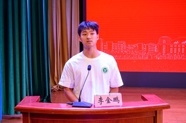 2021级智牧2班李金鹏作为老生代表发言,他分享了自己大学生活感悟,建议新生要珍惜时光,明确目标;勤奋学习,勇于探索;积极参加校园活动,锻炼综合能力;提升自身,为新时代畜牧业发展贡献力量。
