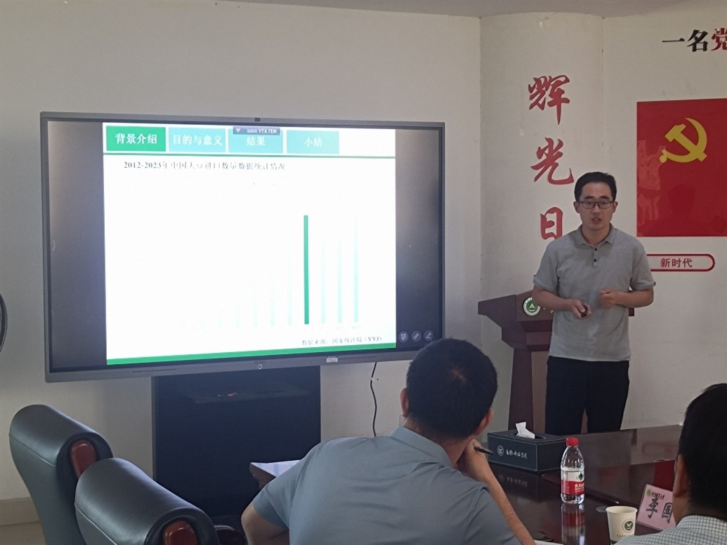 本次会议围绕“畜禽健康养殖”为主题,黄网青年教师(博士后)宫玉杰、王志昌、汪亚苹分别以家禽营养调控及其与繁殖特性的关系、苜蓿叶粉减量替代豆粕在猪上的应用研究、牦牛源罗伊氏乳酸杆菌早期补饲对宿主肠道微生物发育的影响为题进行专题汇报分享。