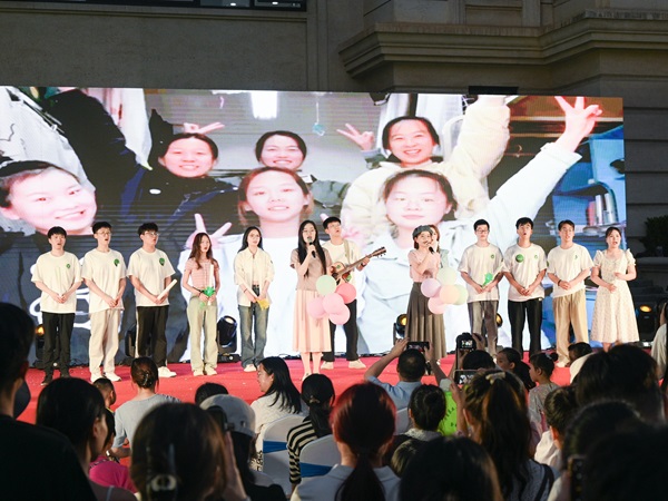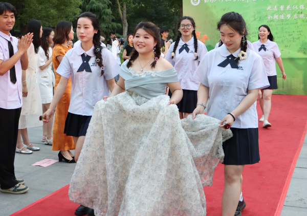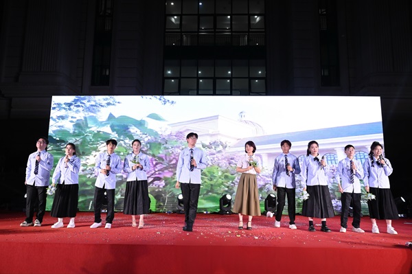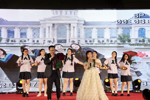 四岁生日快乐;毕业生代表为在场老师送上饱含深情的祝福和鲜花,寓意一朝沐杏雨,一生感师恩,青心传馨,师恩永存。