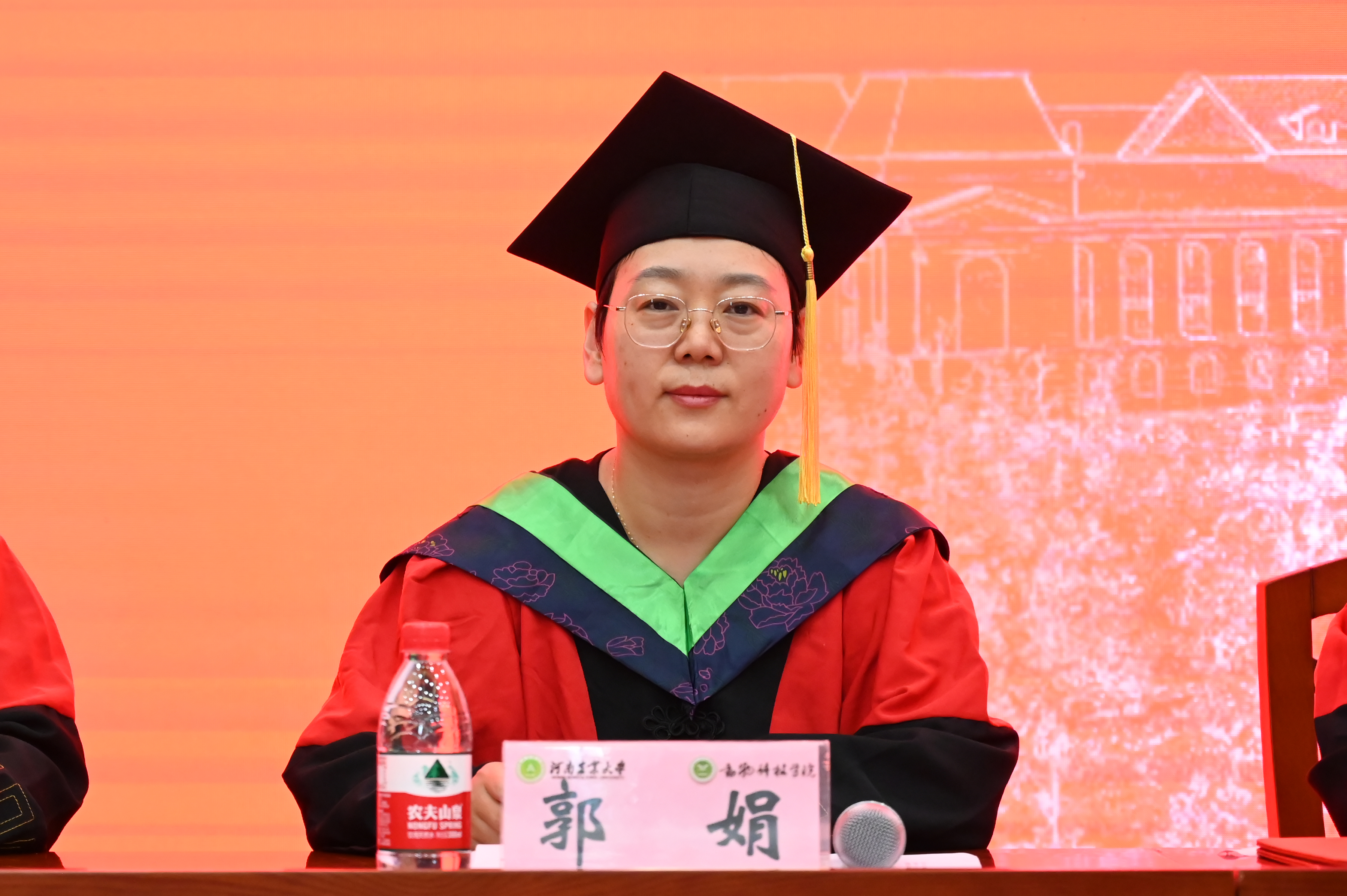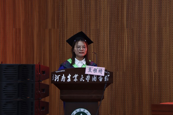 研究生毕业生代表、2021级畜牧学硕班豆雅晴发言。她回顾了在动科(包括牧医)的7年求学生涯,与大家分享收获与成长,表示将光大“团结奋进、力争上游、遵从集体、爱我动科”的黄网