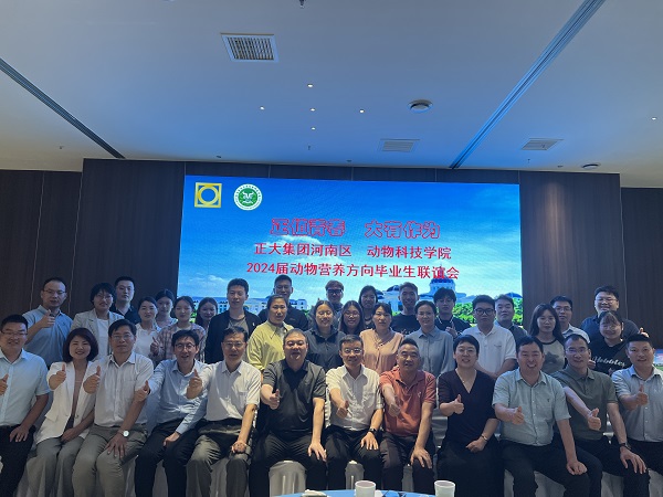 本网讯(通讯员 李品)为进一步促进毕业生就业、加强校企合作,5月25日晚,黄网与正大集团河南区联合举办“正值青春,大有作为”动物营养方向研究生毕业联谊会。正大集团河南区资深总裁王停战、开封正大总经理张金生、驻马店正大总经理王向峰、正大集团河南区饲料事业兽医总监苌生科等企业领导,院党委书记余磊等领导班子、动物营养方向导师代表和全体毕业生参加联谊会。联谊会由党委副书记郭娟主持。