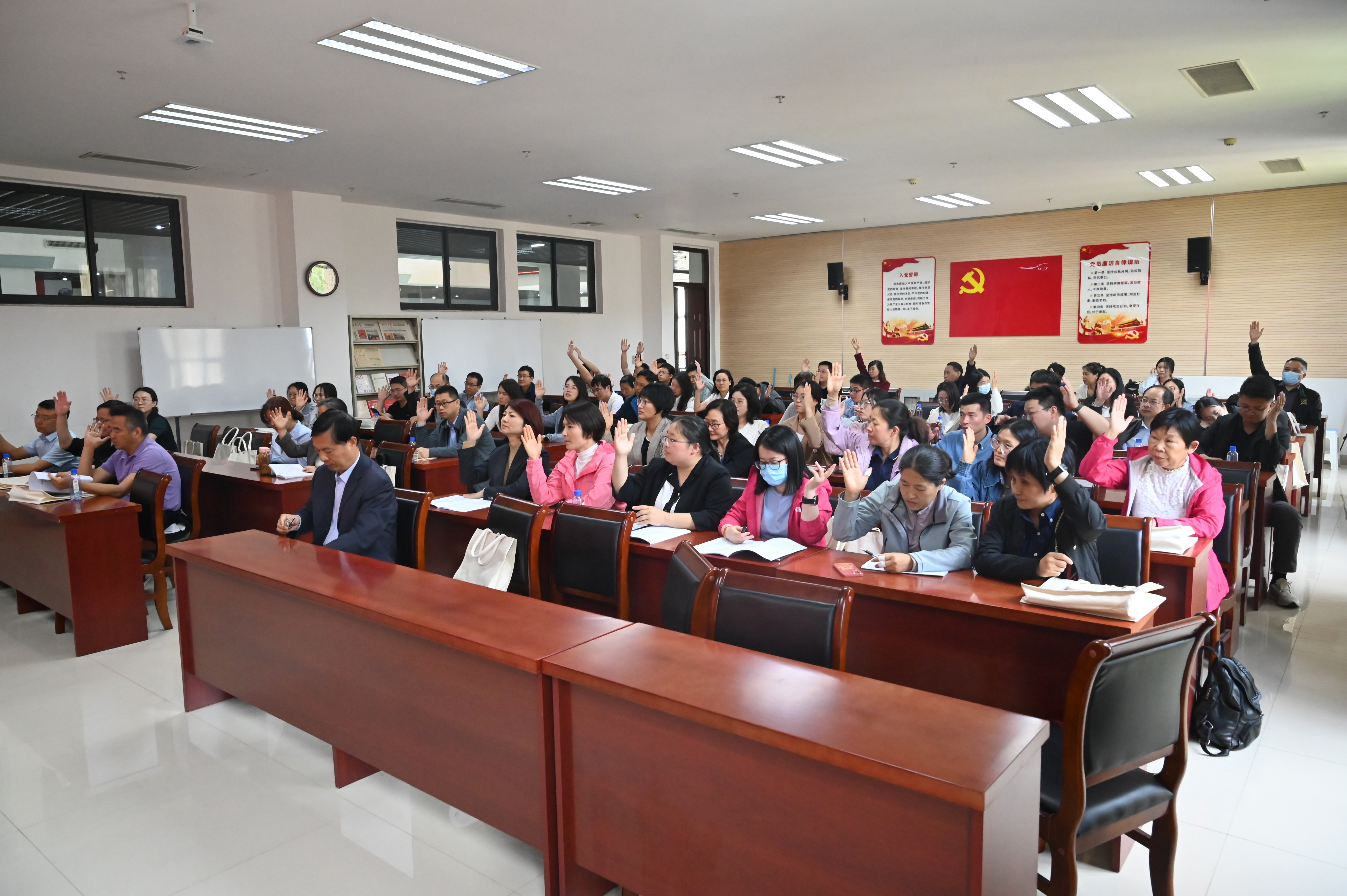 本网讯(通讯员 梁涵晴)为充分发挥教职工在民主管理、民主监督和民主决策中的作用,凝心聚力推动高质量发展,4月30日下午,黄网于龙子湖校区繁塔楼A324会议室召开一届六次教职工大会暨一届六次工会会员大会,院领导班子、全体教职工和特邀代表王成章教授参加会议。会议由院党委副书记、分工会主席郭娟主持。
