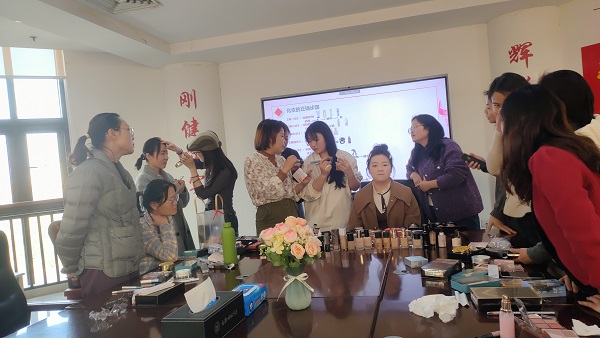 培训会上,化妆师薛诗语从化妆的目的、步骤、技巧及注意事项等方面进行了详细讲解,并以实操的方式进行了现场指导。