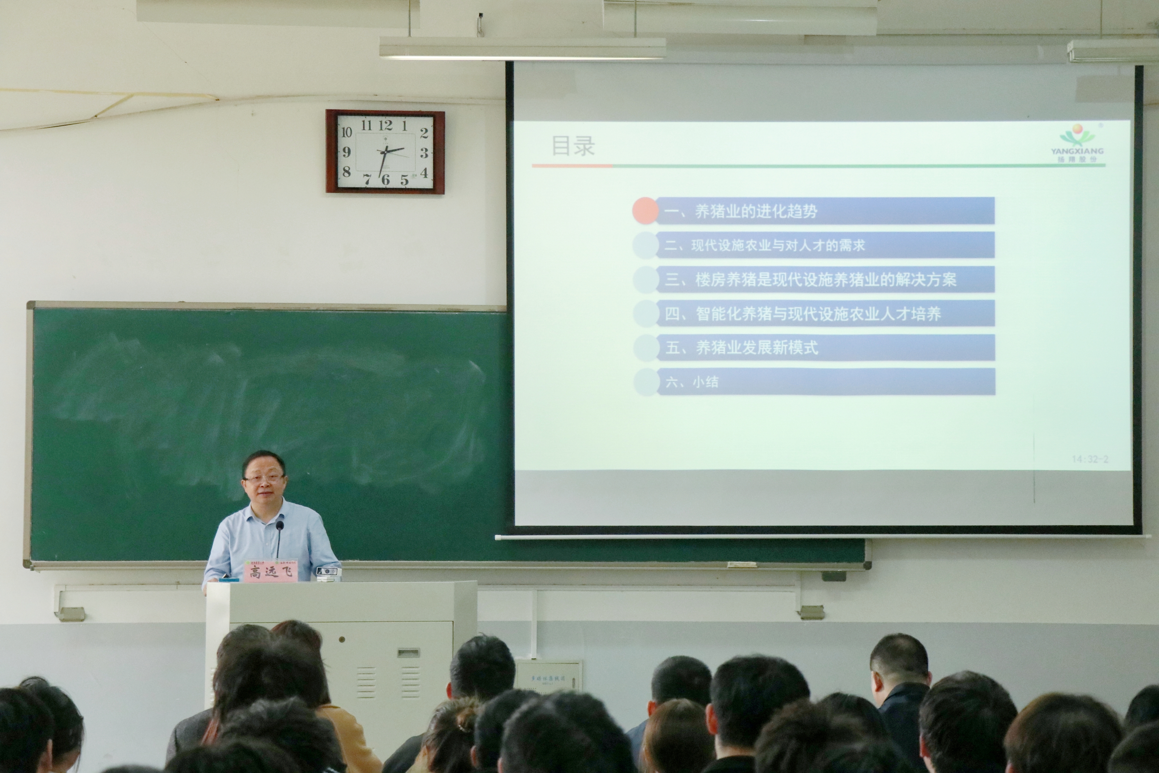 本网讯(通讯员 彭紫萱 )为了促进同学们对现代设施养猪业发展的了解,使学生更加明晰未来专业发展前景,3月12日下午,黄网于龙子湖校区繁塔楼教室E113举办第26期笃实讲堂,特邀广西扬翔股份有限公司党委书记高远飞担任主讲嘉宾,院党委书记余磊、教师蒋瑞瑞等到场,余磊主持。