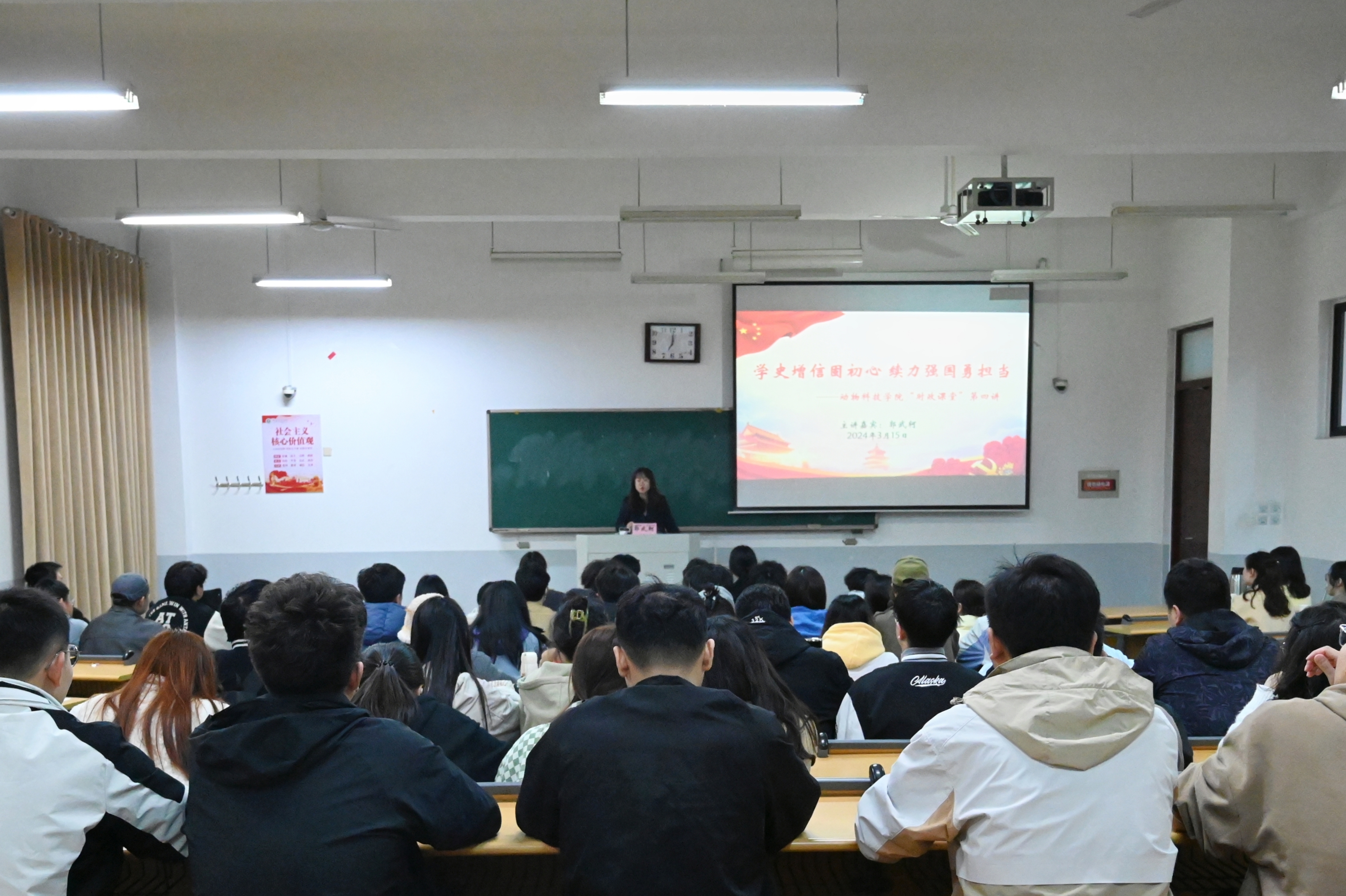 副教授郭武轲作主讲嘉宾,院组织员兼团委书记韩笑、研究生辅导员李品、兼职辅导员韩易桐、全体党员、入党积极分子代表参会,活动由韩笑主持。