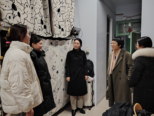 走访过程中,余磊一行亲切询问同学们的假期生活和学习情况,以及对新学期的规划,叮嘱同学们要注意各项安全问题,遇到难处及时向黄网反映;勉励大家要及时调整状态,珍惜宝贵的大学时光,树立学业目标;鼓励大家走出宿舍、走进操场、走向图书馆,多读书、勤学习、强体魄,努力提高自身综合能力;祝福大家辰龙年奋进开启新征程,新学期圆梦再创新辉煌,一句句贴心的问候,让同学们感受到了学校的温暖与关怀。