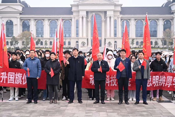 本网讯(通讯员 梁涵晴 )为进一步加强爱国主义教育,凝聚奋进力量,11月13日清晨,黄网于龙子湖校区举行以“好学力行求真知,强国筑梦我担当”为主题的升旗仪式,黄网