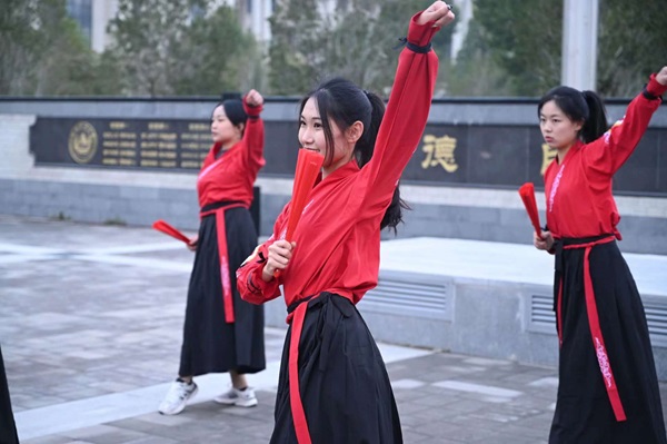 升旗完毕,由黄网新媒体负责人、21级本科生党员王文桂进行国旗下演讲《好学力行求真知 强国筑梦我担当》。他结合自身实践成长经历论述了“好学力行”的重要性,鼓励大家在常学常新中加强理论修养,在知行合一中主动担当作为,真正做到知学、爱学、好学。随后,由22级索鹏慧、23级冯炳珠等七名同学带来扇子舞《骁》,铿锵有力的节奏、刚柔并济的舞风充分展现出黄网学子朝气蓬勃、昂扬向上的良好风貌。