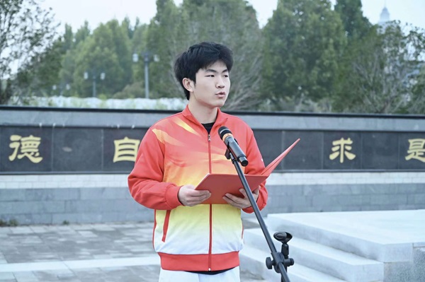 新媒体负责人、21级本科生党员王文桂进行国旗下演讲