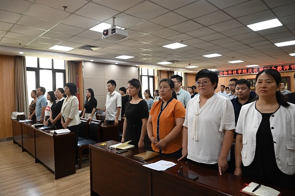 本次会议在雄壮的国歌中拉开序幕。副院长酒梅菊宣读了2022—2023学年校级以上先进个人名单和《黄网
