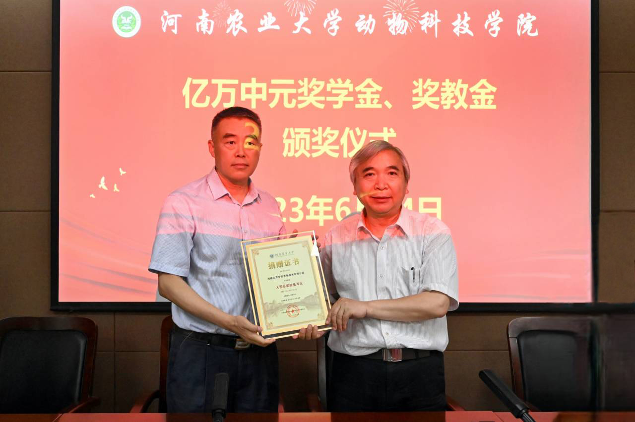 关于颁发2023年“亿万中元”企业奖学金、奖教金的决定》,与会嘉宾为获得奖教金、奖学金的19位师生颁奖并合影留念,现场气氛热烈。