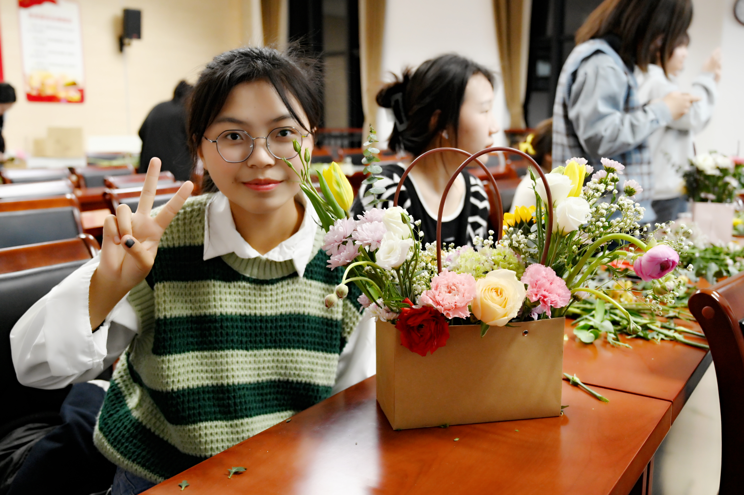 同学们亲手制作的花篮