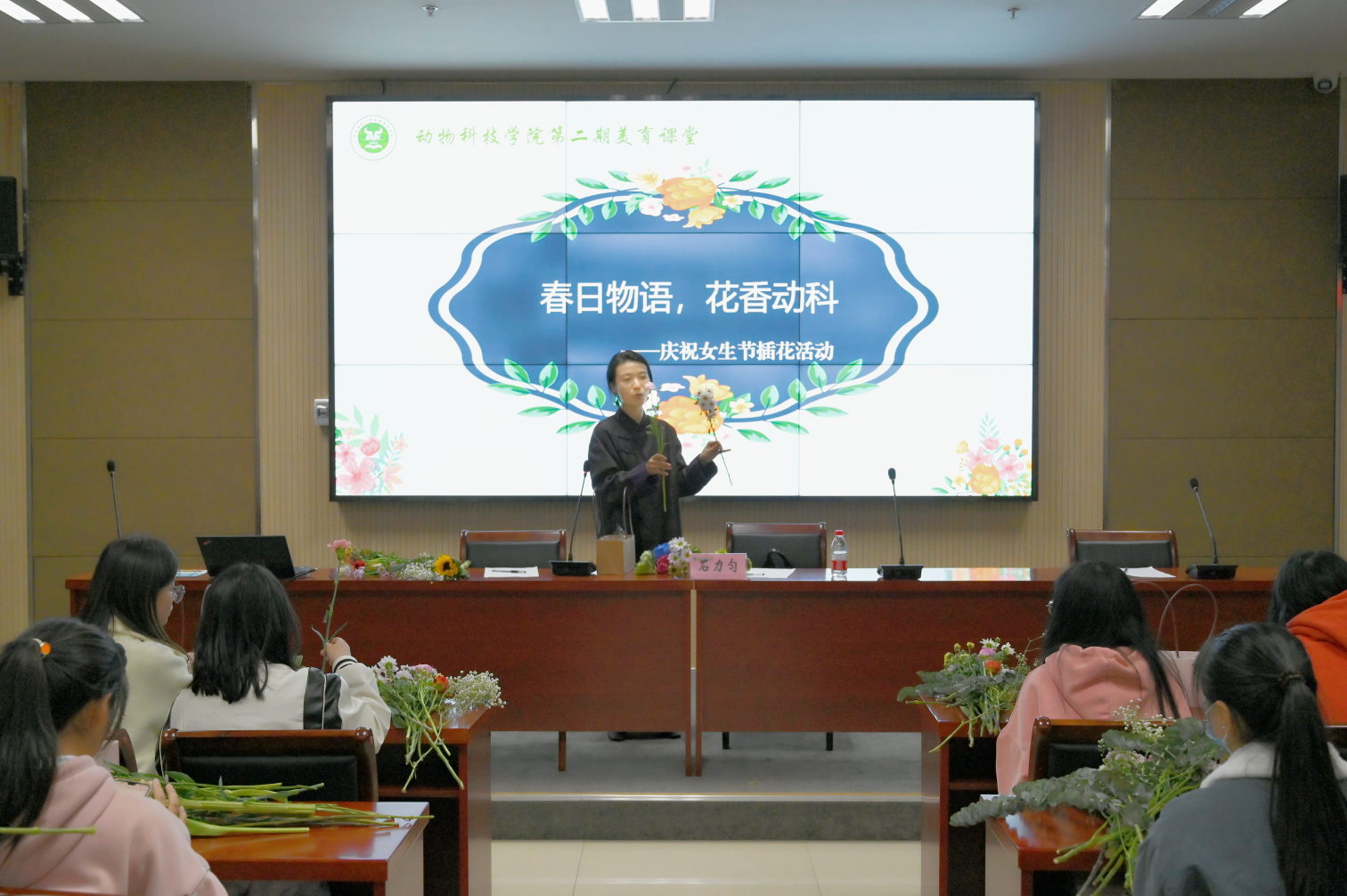 本网讯(通讯员 杨洁洁)为提升黄网学子的人文素养,涵养自然情趣,提升生活品位。3月3日晚,黄网举办以“春日物语,花香动科”为主题的美育课堂,特邀我校园林系副教授石力匀老师于繁塔楼A座324教室与同学们共同感知插花的乐趣。黄网兼职辅导员杨盼盼及部分学生代表参加本次活动。