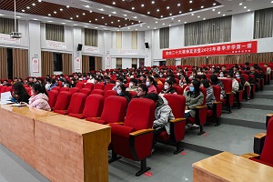 取得的优异成绩,帮助同学们树立专业自信。随后,他简要介绍了党的二十大报告中包含的十五个方面的主要内容,重点从党的二十大报告中的新观点、新论断和新思想等内容进行详细阐述。他强调,青年强则国家强,大学生要积极关注时事热点,要在知行合一中主动担当,从身边的点滴做起,把青春干在实处,争做时代青年。他号召大家:树立终身学习的理念,关注国家发展战略,脚踏实地、认真钻研,知难而进、迎难而上,以奋进姿态开启2023年春季学期新征程,用党的二十大学习教育的实际成效和优异成绩把自己锻造成为德智体美劳全面发展的中国特色社会主义事业的建设者和接班人。